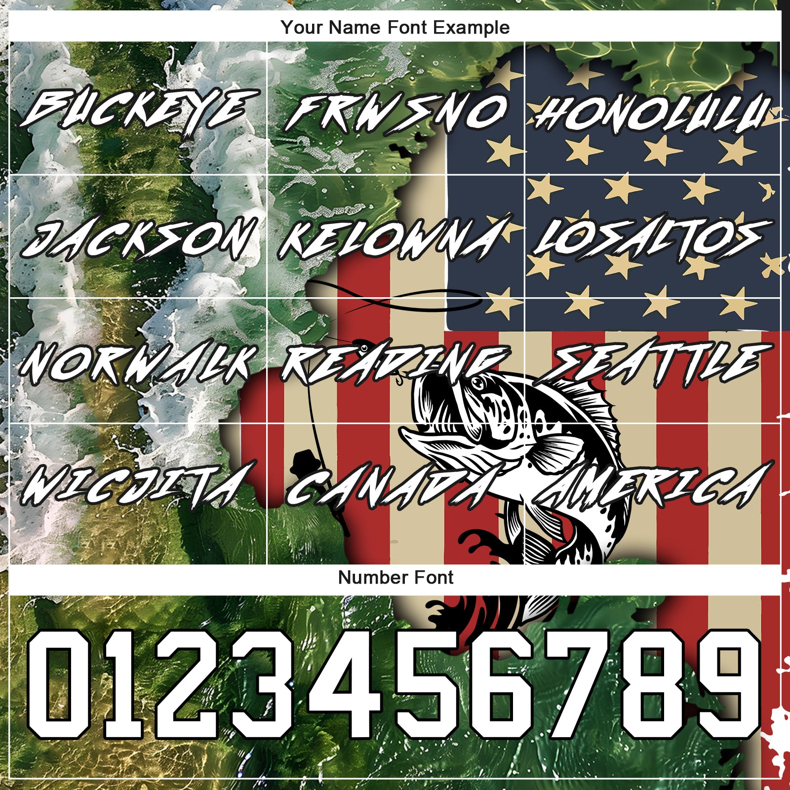 Custom Aurora Green White-Black 3D American Flag And Largemouth Bass Fish Fishing Sports Pullover Sweatshirt Hoodie