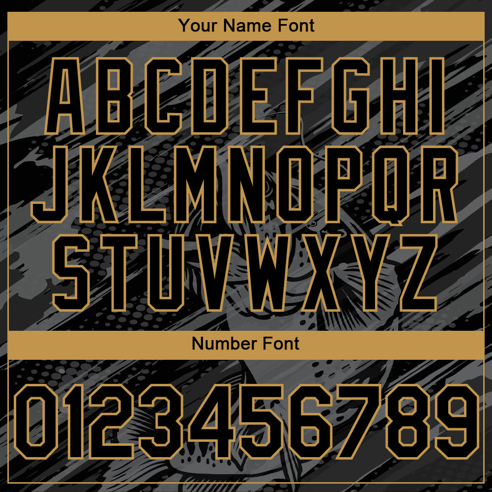 Custom Black Old Gold Largemouth Bass Fish Fishing 3D Bomber Full-Snap Varsity Letterman Hoodie Jacket