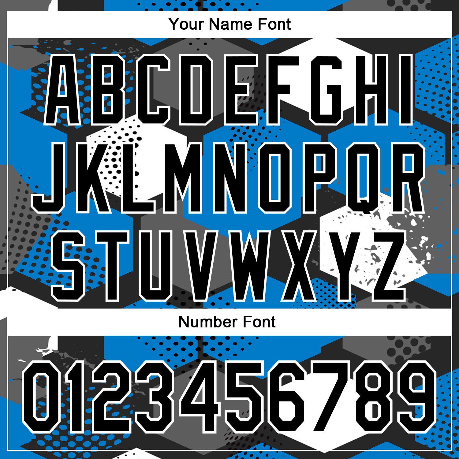 Custom Black Powder Blue-White Geometric Shape 3D Pattern Design Bomber Full-Snap Varsity Letterman Hoodie Jacket
