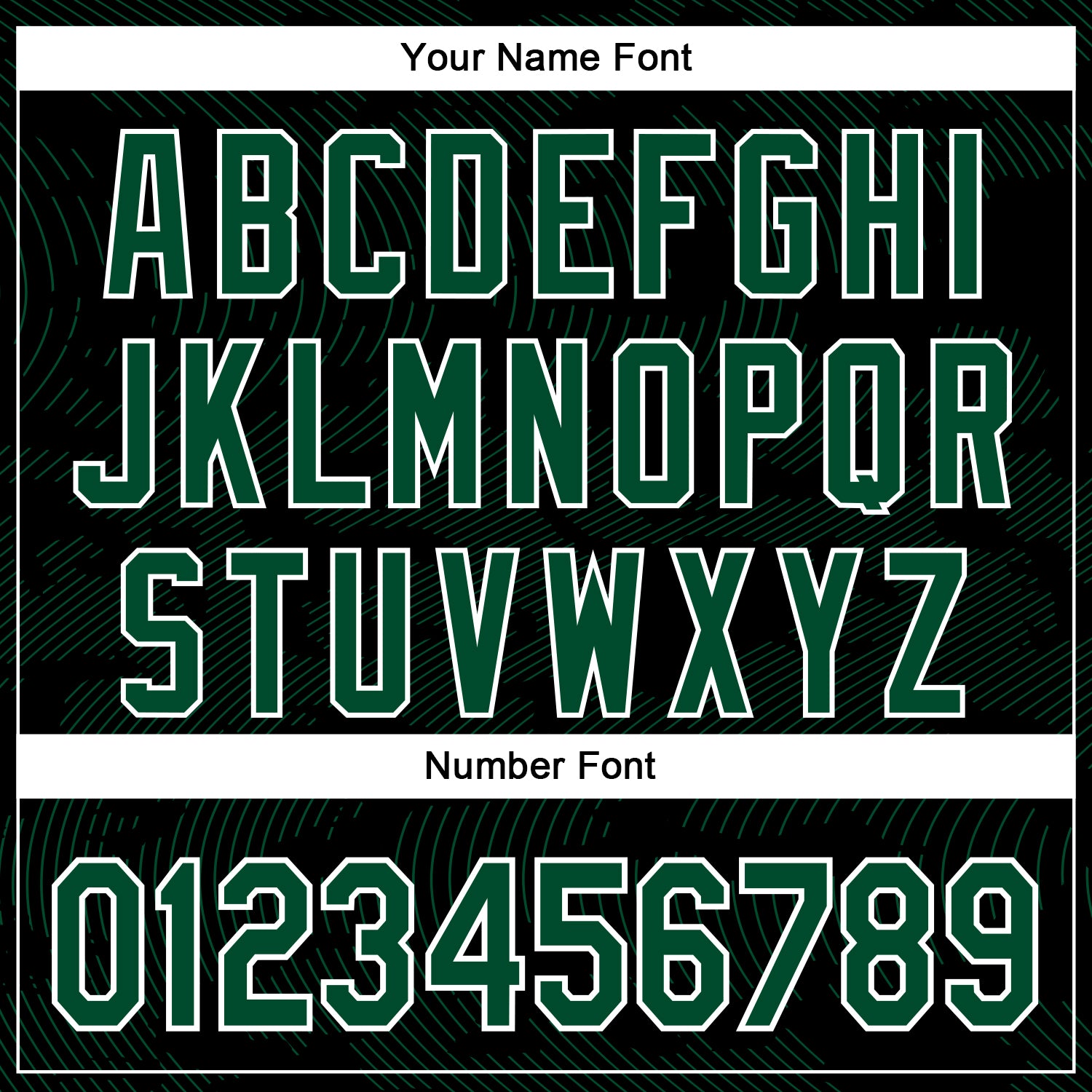 Custom Black Kelly Green-White Curve Lines 3D Pattern Design Bomber Full-Snap Varsity Letterman Hoodie Jacket