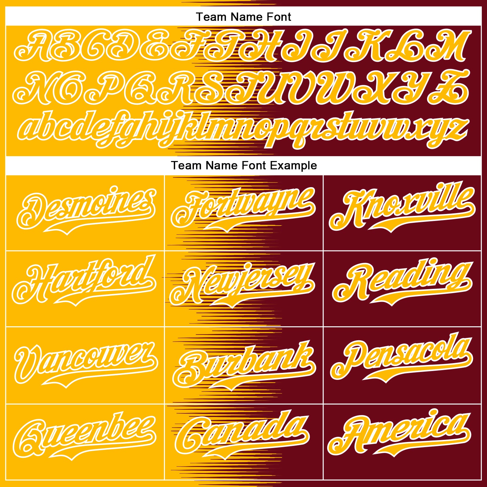 Custom Gold Crimson-White Gradient Line Bomber Full-Snap Varsity Letterman Hoodie Jacket