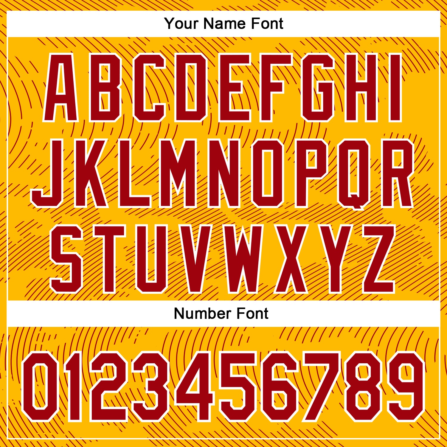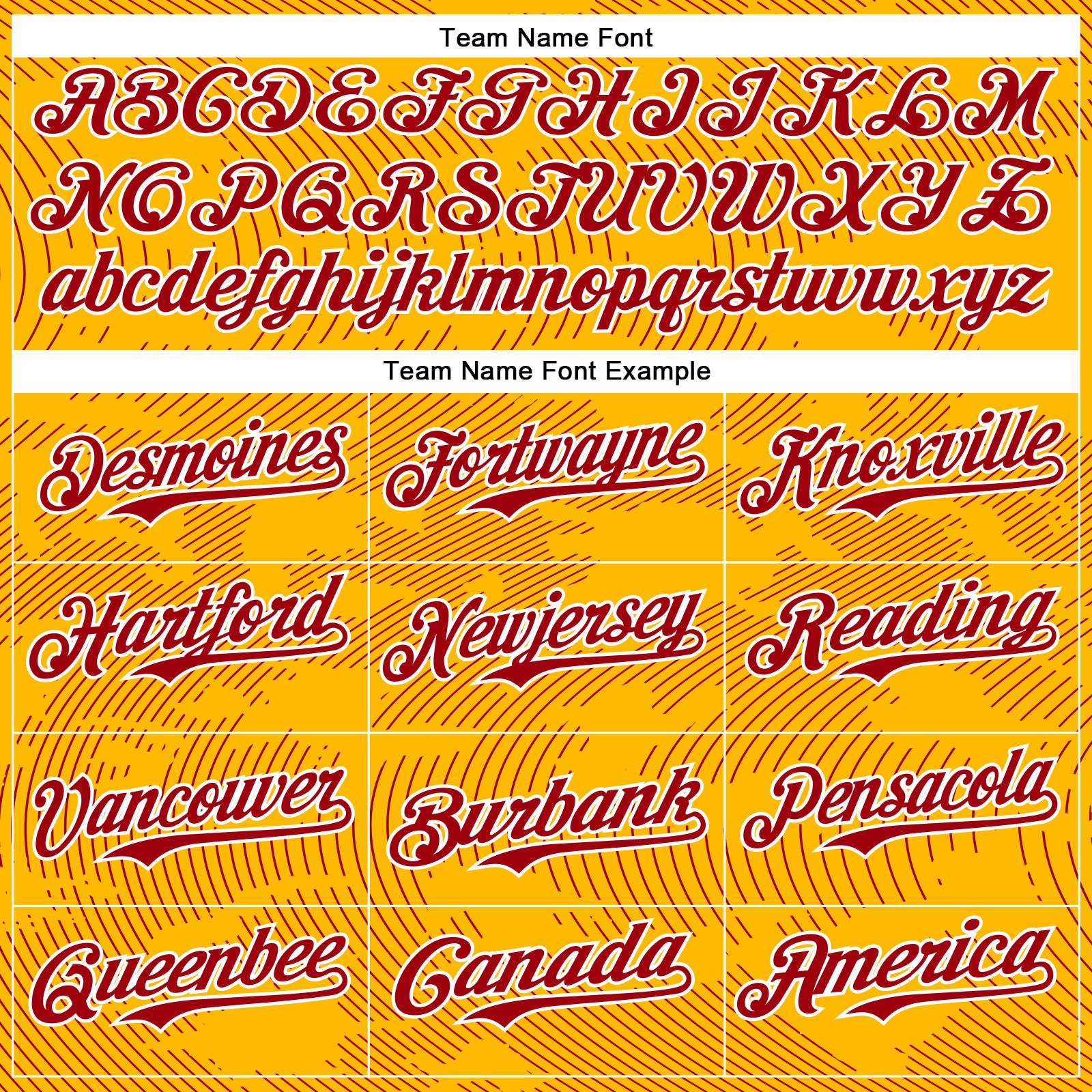 Custom Gold Red-White Curve Lines 3D Pattern Design Bomber Full-Snap Varsity Letterman Hoodie Jacket