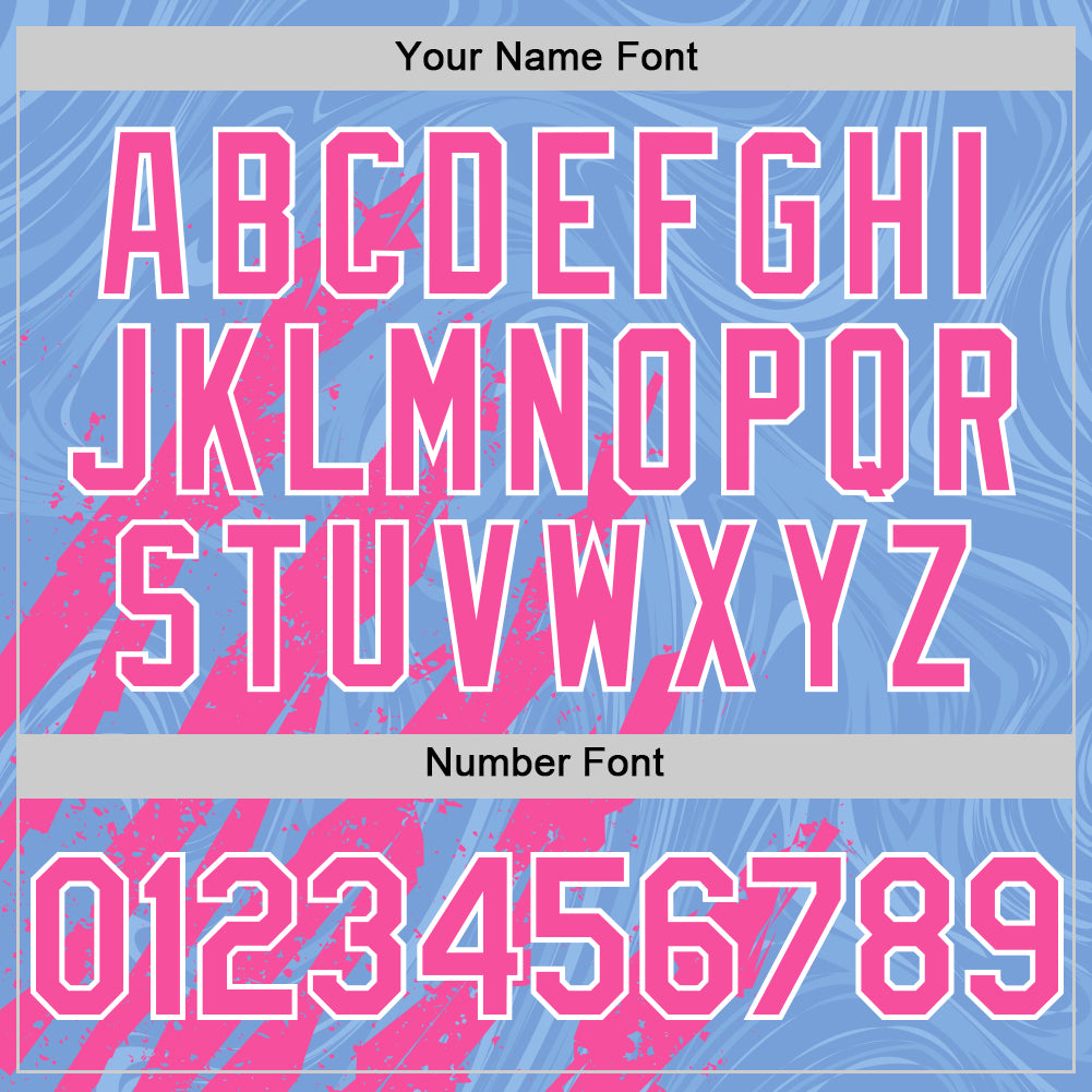 Custom Light Blue Pink-White Splash 3D Pattern Design Bomber Full-Snap Varsity Letterman Hoodie Jacket