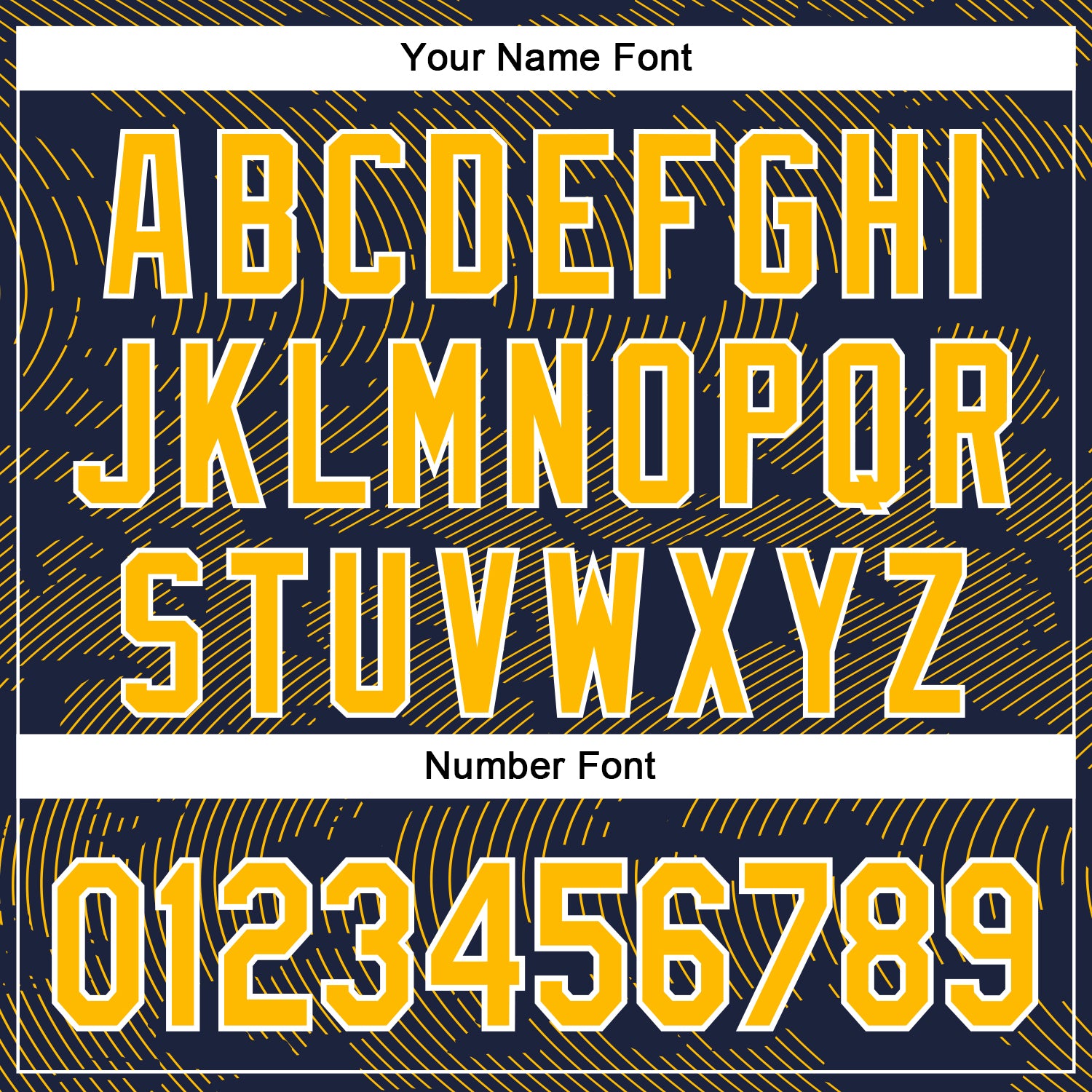 Custom Navy Gold-White Curve Lines 3D Pattern Design Bomber Full-Snap Varsity Letterman Hoodie Jacket