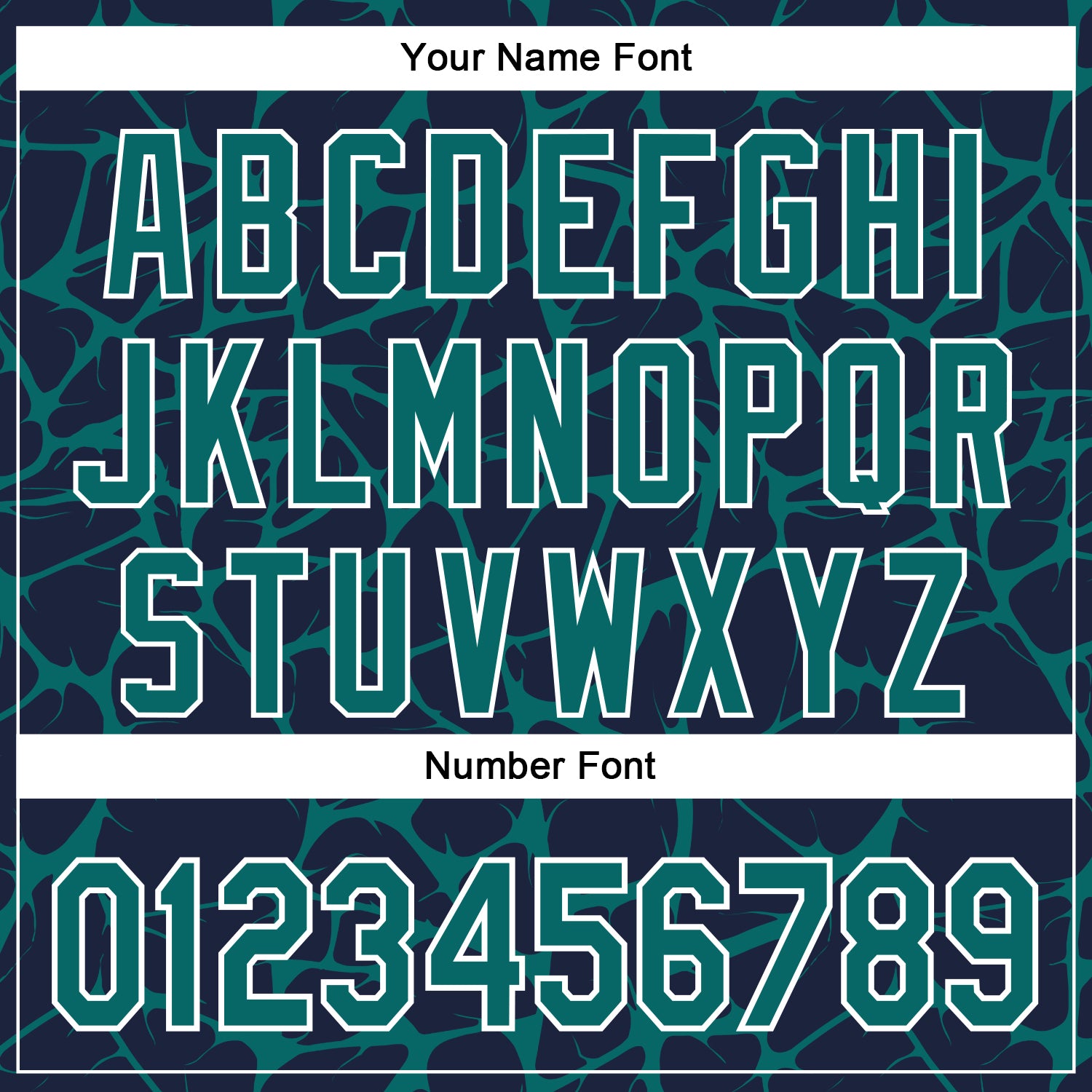 Custom Navy Teal-White Abstract Network 3D Pattern Design Bomber Full-Snap Varsity Letterman Hoodie Jacket