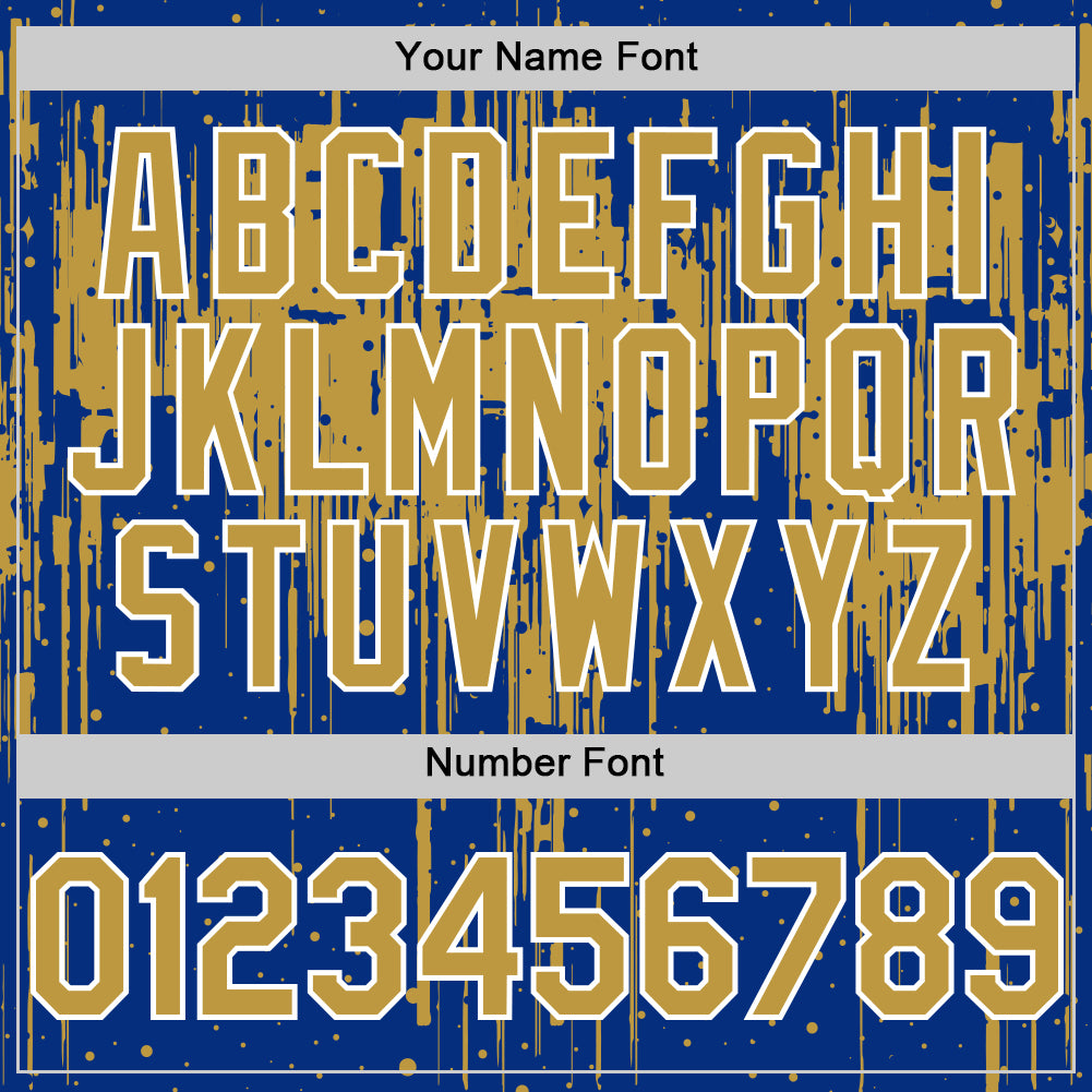 Custom Royal Old Gold-White Dripping Splatter 3D Pattern Design Bomber Full-Snap Varsity Letterman Hoodie Jacket
