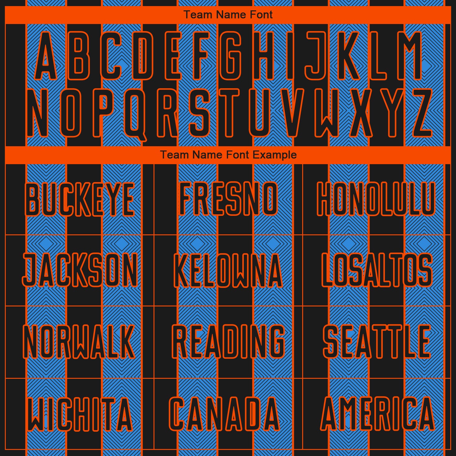 Custom Black Powder Blue-Orange Pinstripe Line Sports Sublimation Soccer Uniform Jersey