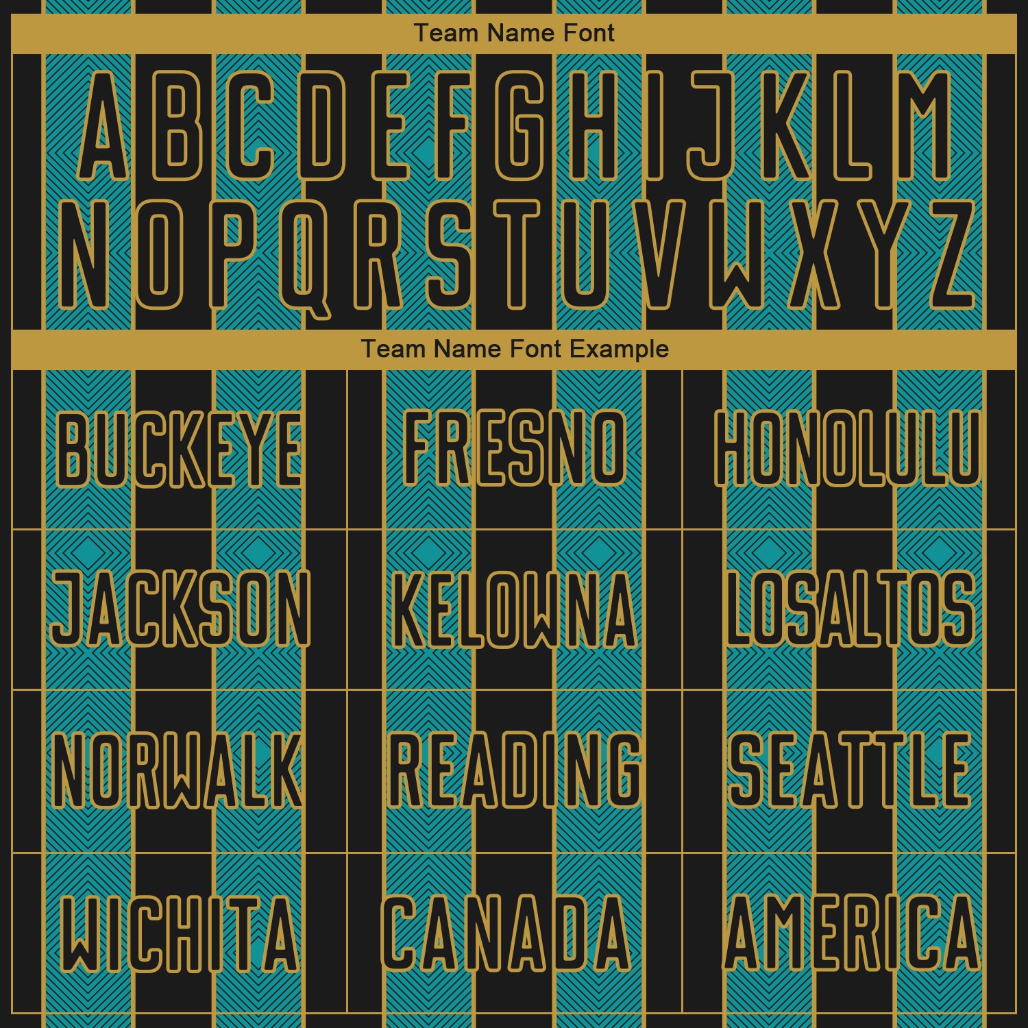 Custom Black Teal-Old Gold Pinstripe Line Sports Sublimation Soccer Uniform Jersey