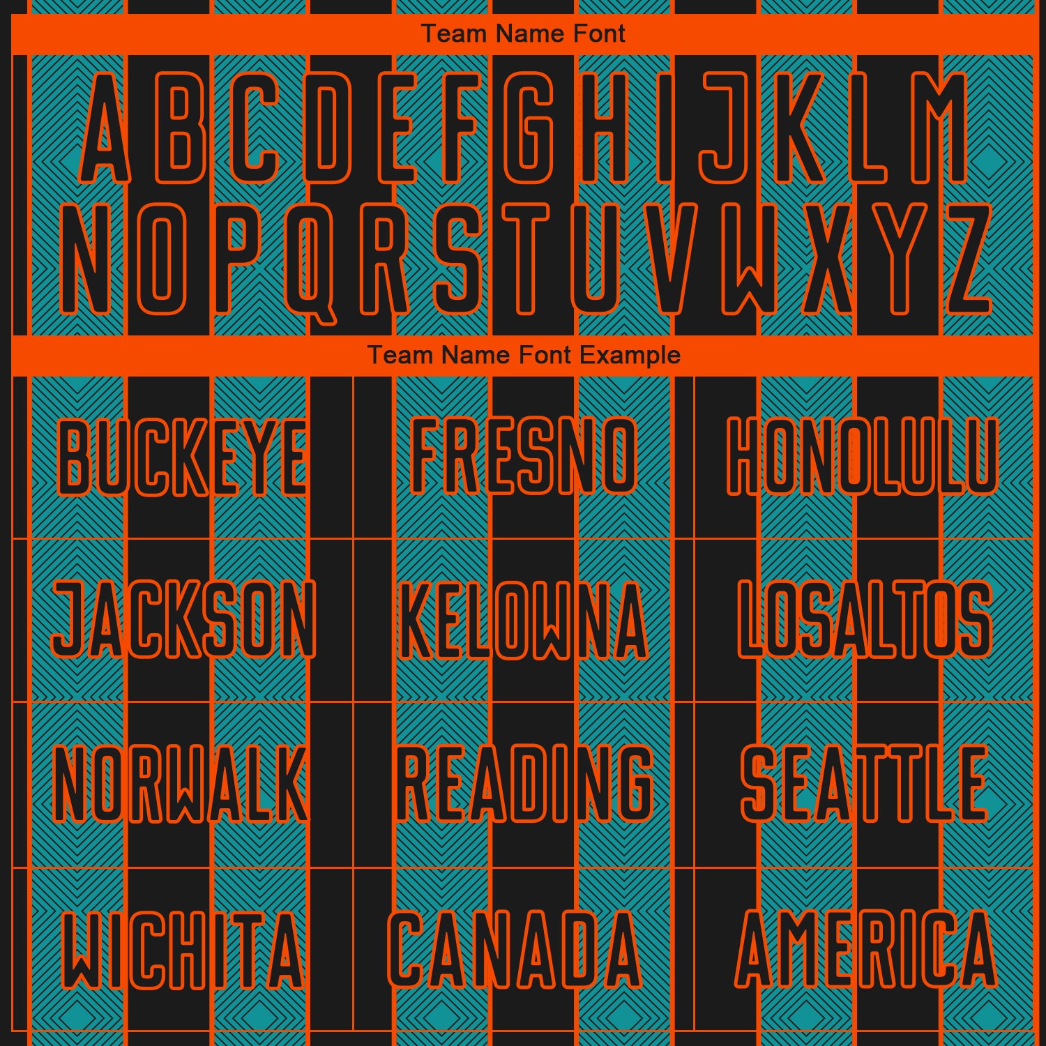 Custom Black Teal-Orange Pinstripe Line Sports Sublimation Soccer Uniform Jersey