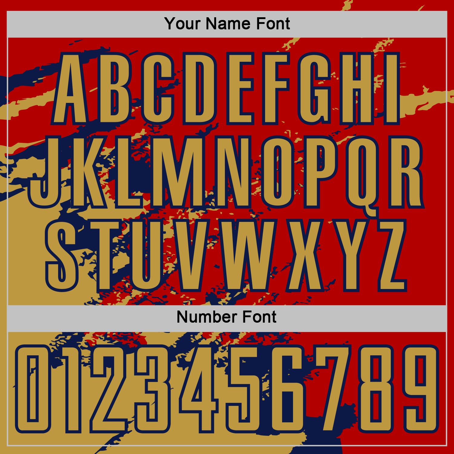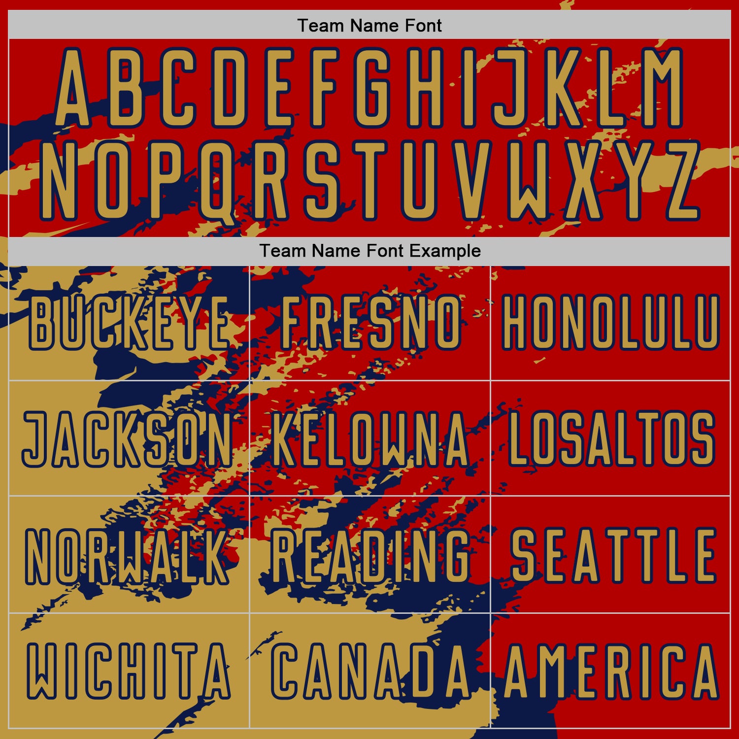 Custom Red Old Gold-Navy Abstract Fragment Art Splash Sports Sublimation Soccer Uniform Jersey