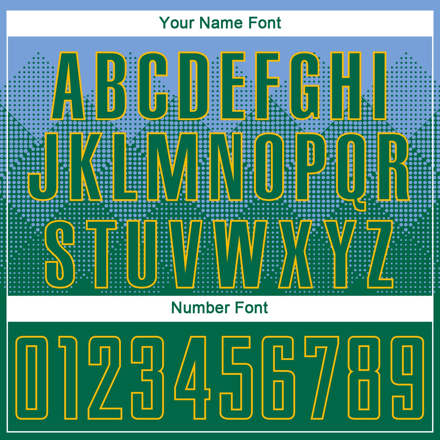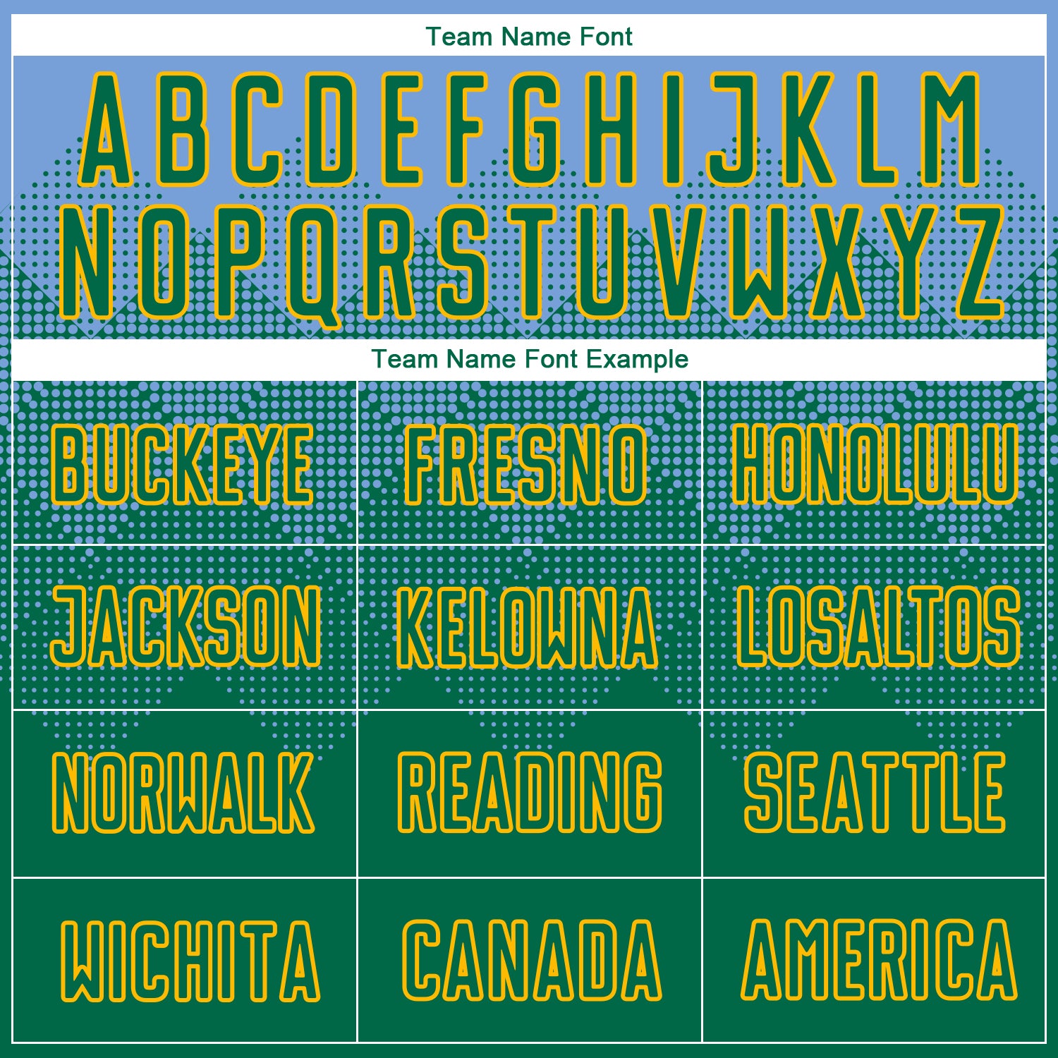 Custom Light Blue Kelly Green-Gold Sublimation Soccer Uniform Jersey