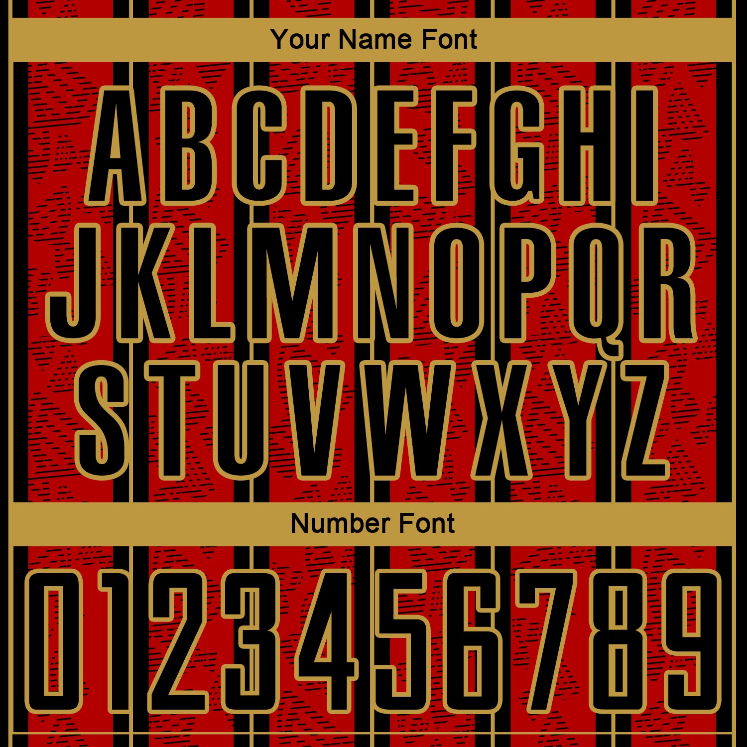 Custom Red Black-Old Gold Stripe Line Sublimation Soccer Uniform Jersey