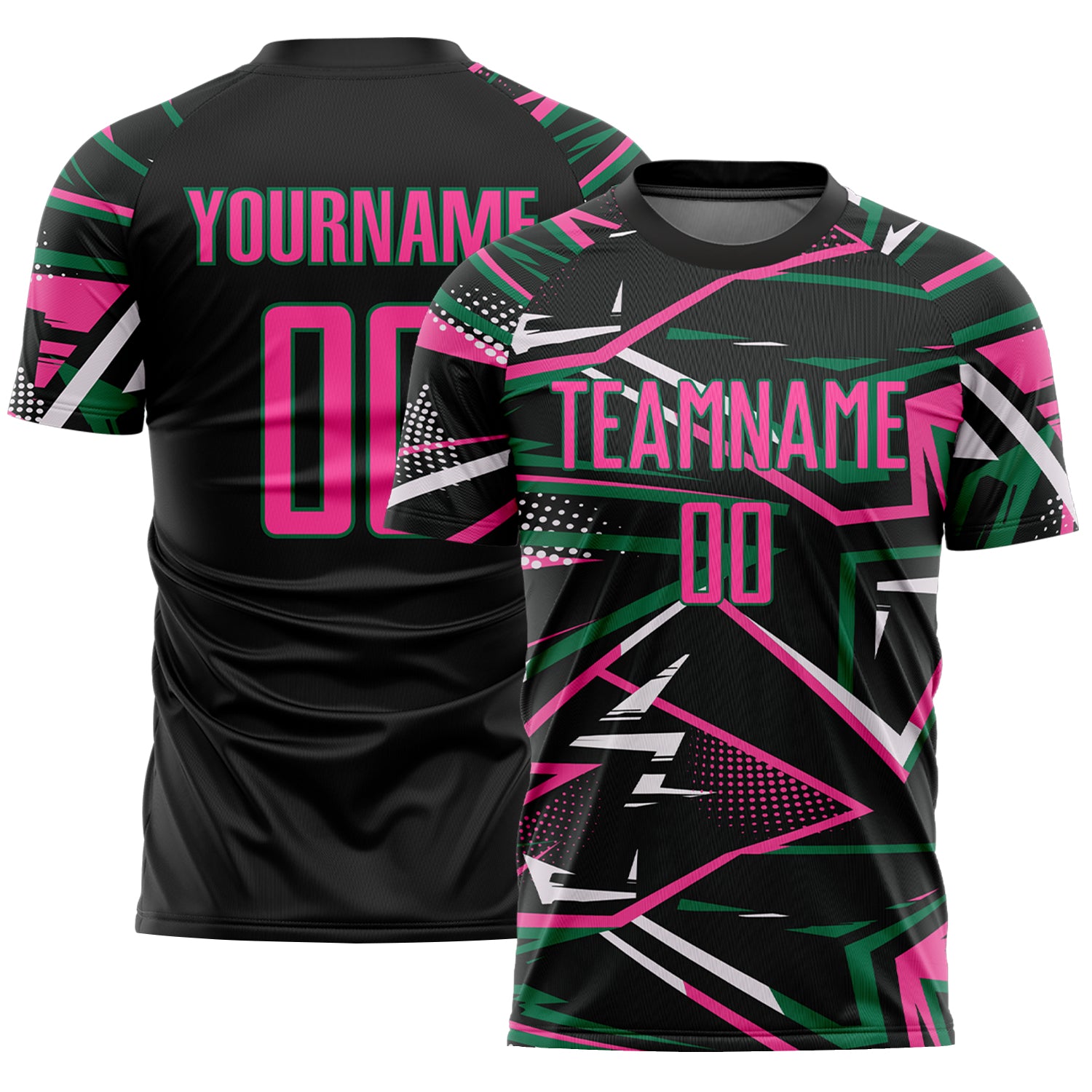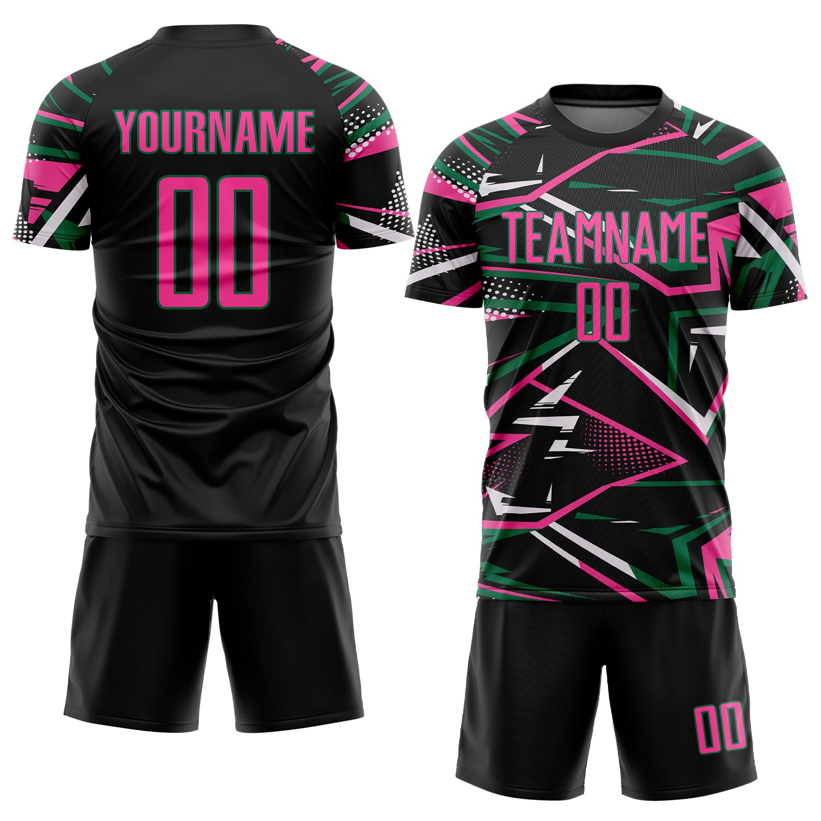 Custom Black Pink Kelly Green-White Abstract Geometric Stripes Sports Sublimation Soccer Uniform Jersey