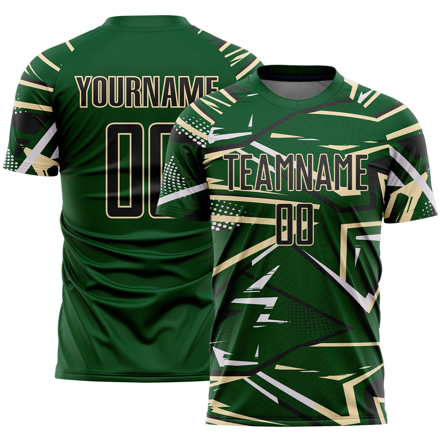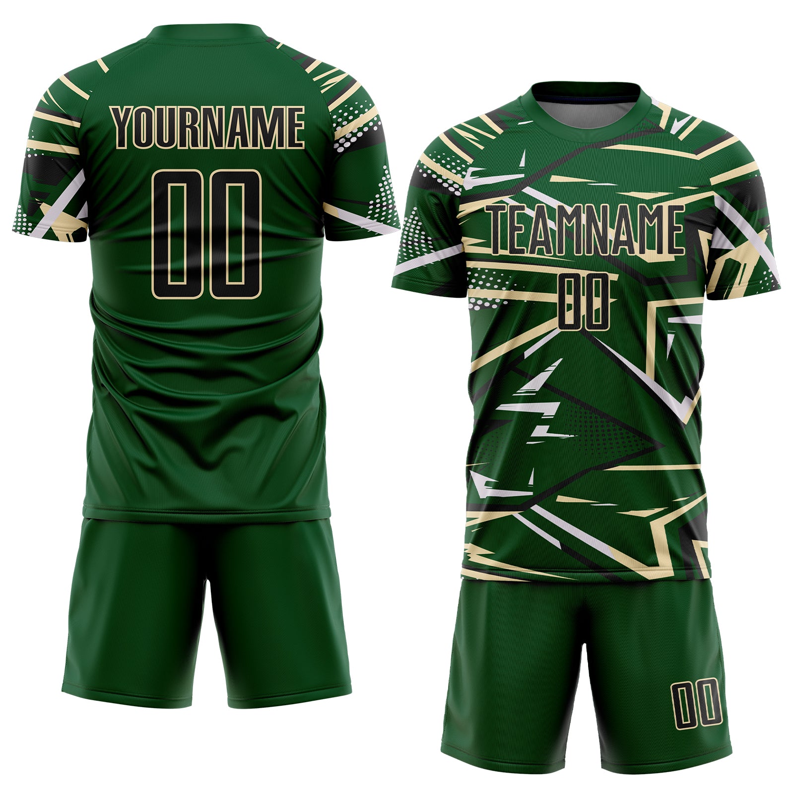 Custom Green Black Cream-White Abstract Geometric Stripes Sports Sublimation Soccer Uniform Jersey