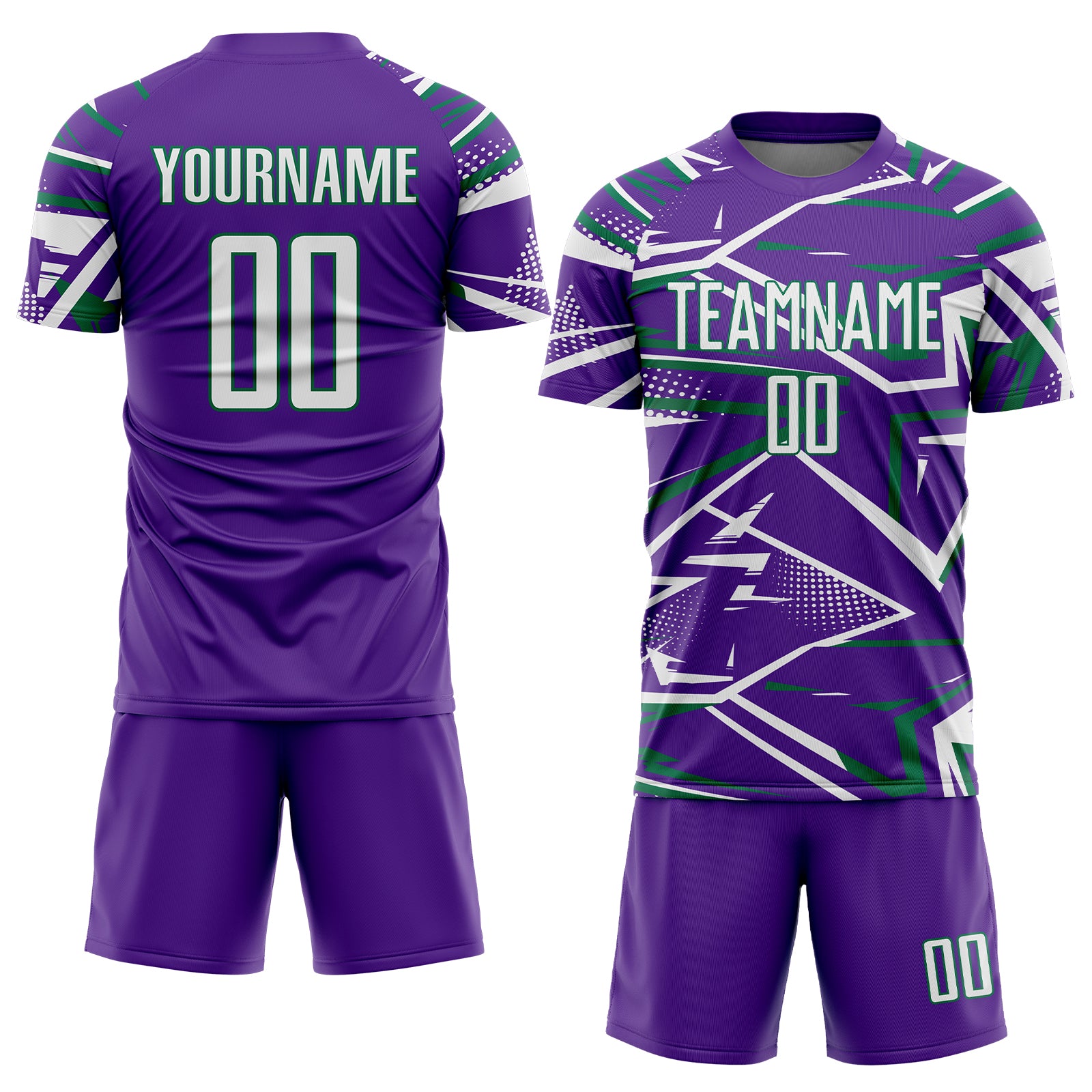 Custom Purple White-Kelly Green Abstract Geometric Stripes Sports Sublimation Soccer Uniform Jersey