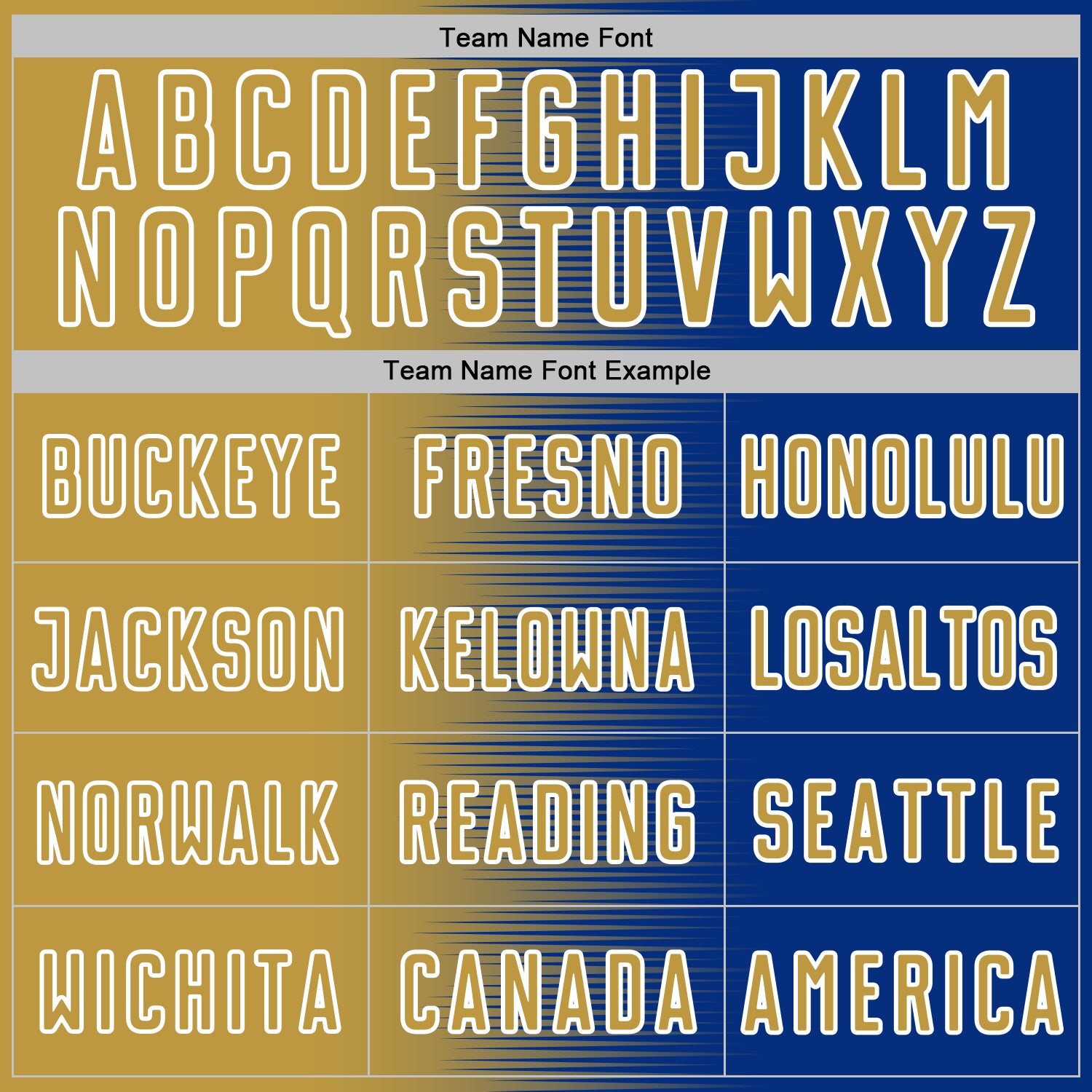 Custom Royal Old Gold-White Gradient Line Sublimation Soccer Uniform Jersey