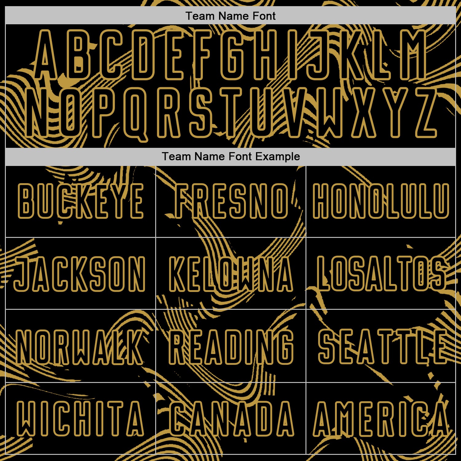 Custom Black Old Gold Curve Lines Sports Sublimation Soccer Uniform Jersey