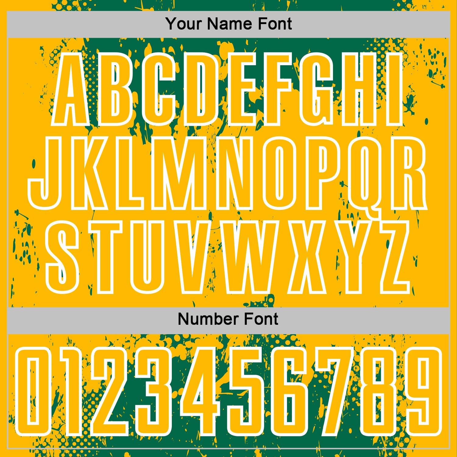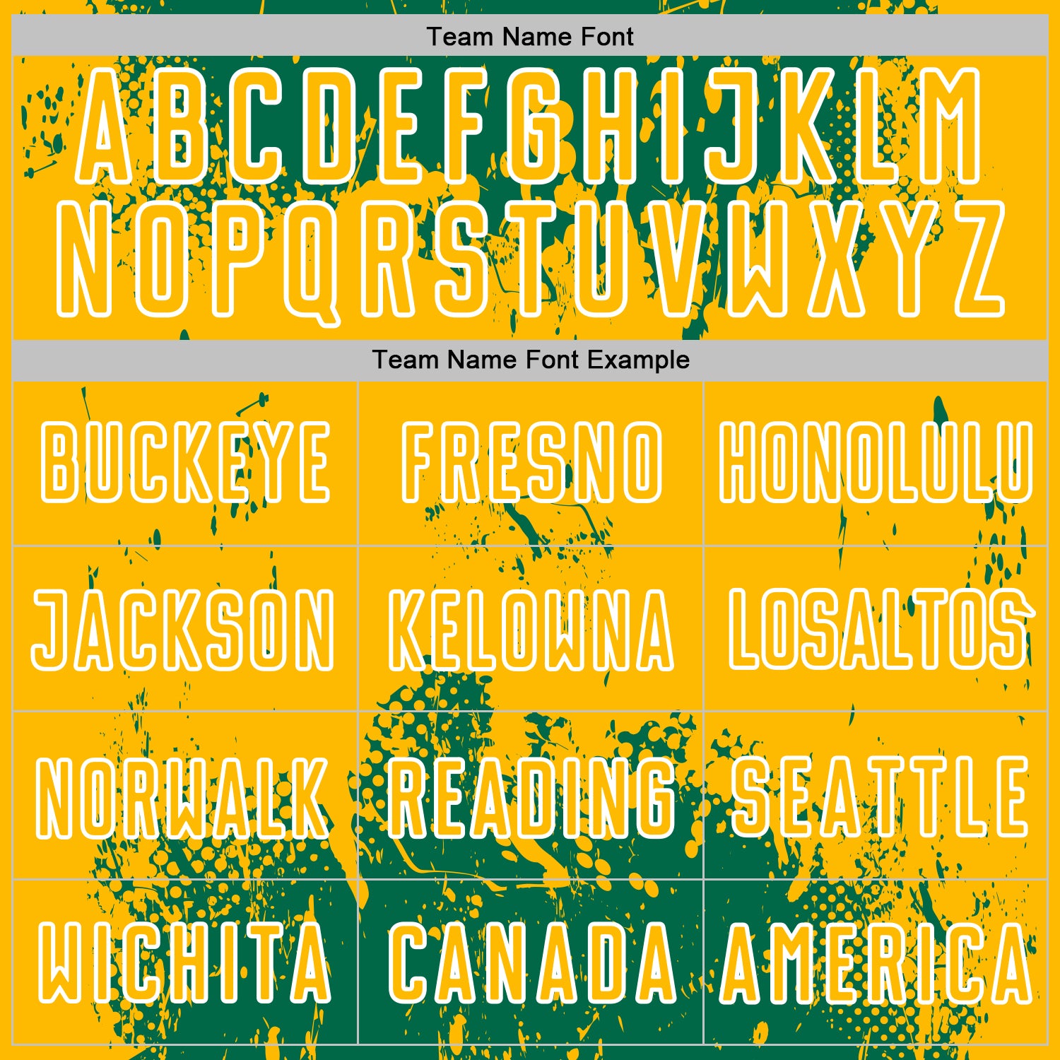 Custom Kelly Green Gold-White Abstract Splatter Grunge Art Sports Sublimation Soccer Uniform Jersey