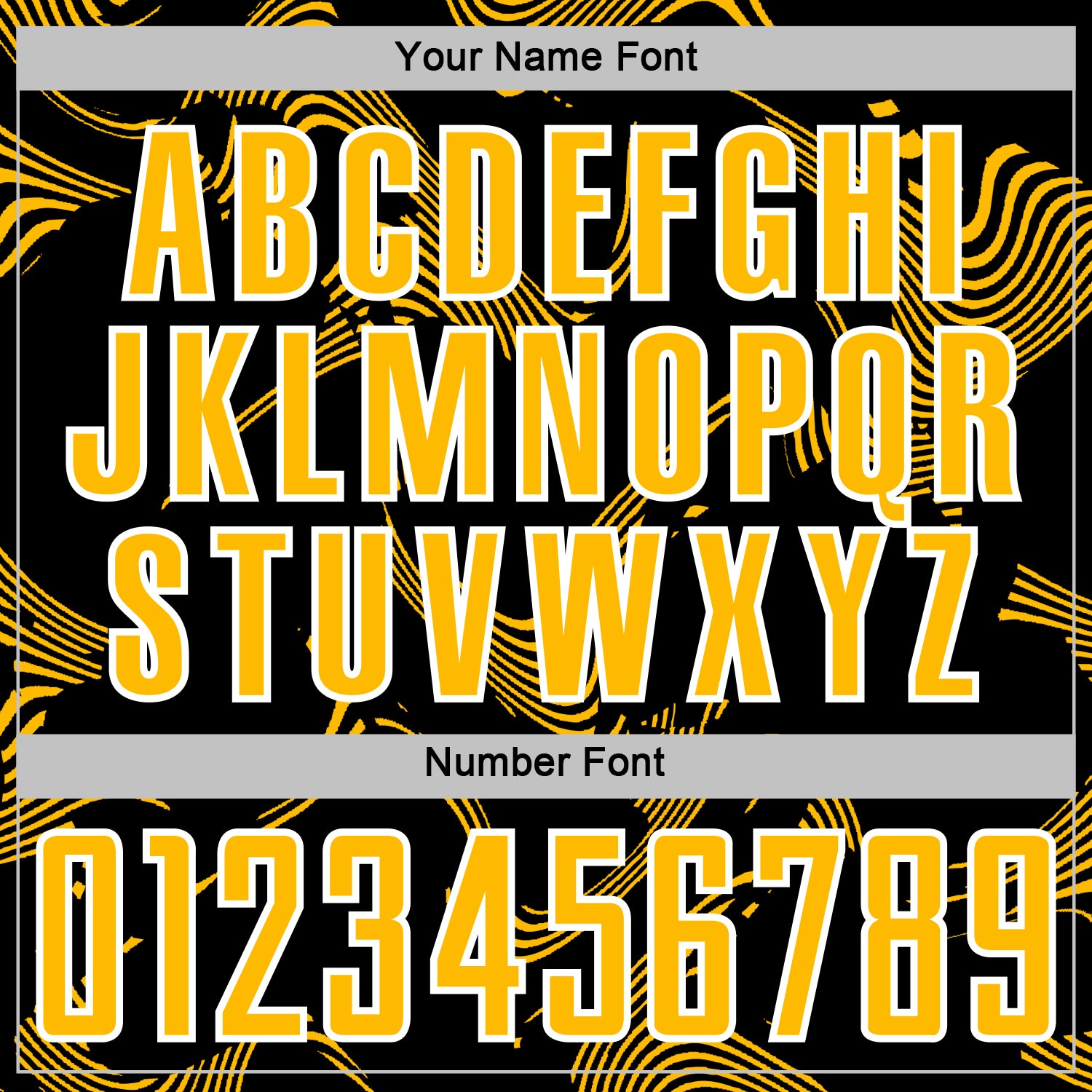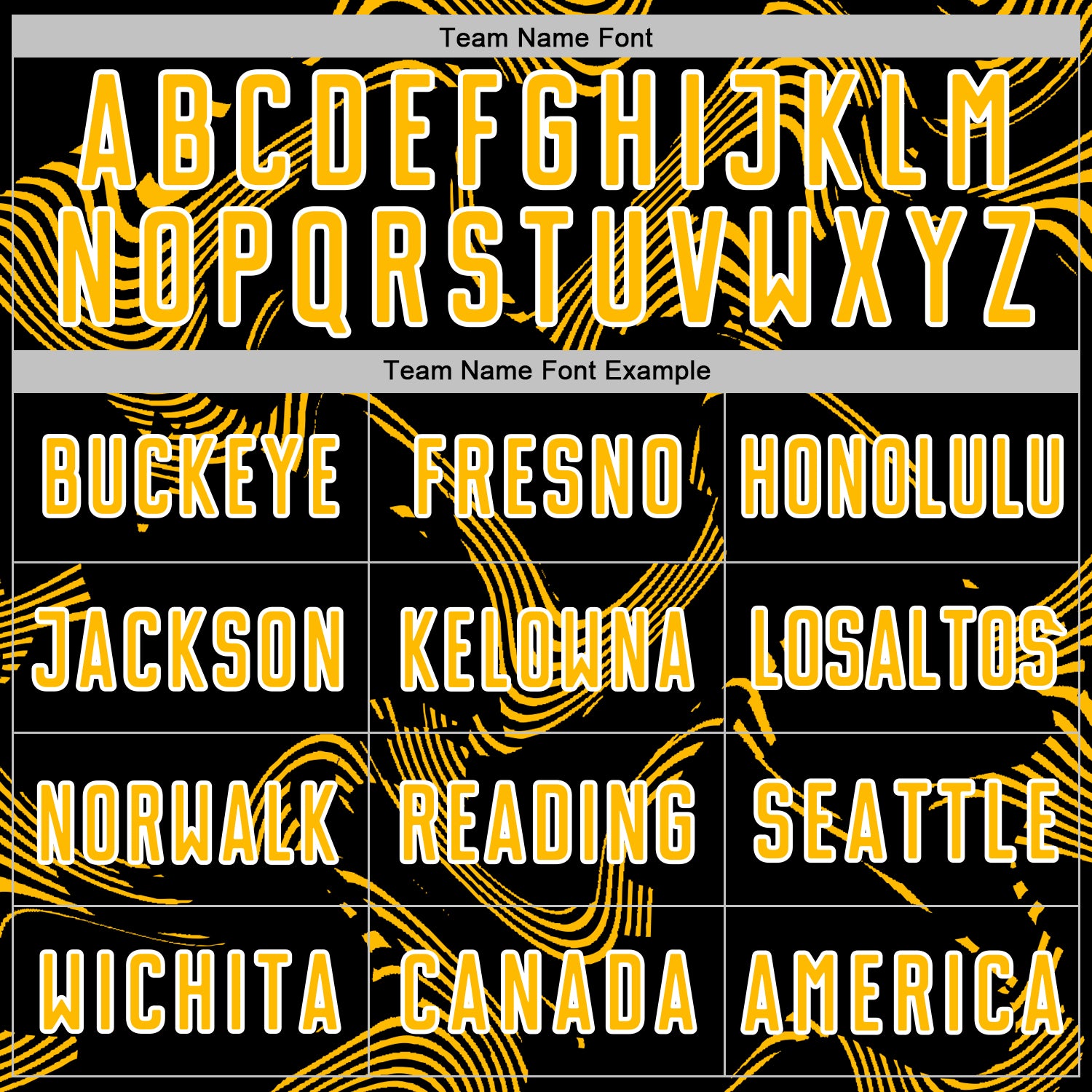 Custom Black Gold-White Curve Lines Sports Sublimation Soccer Uniform Jersey