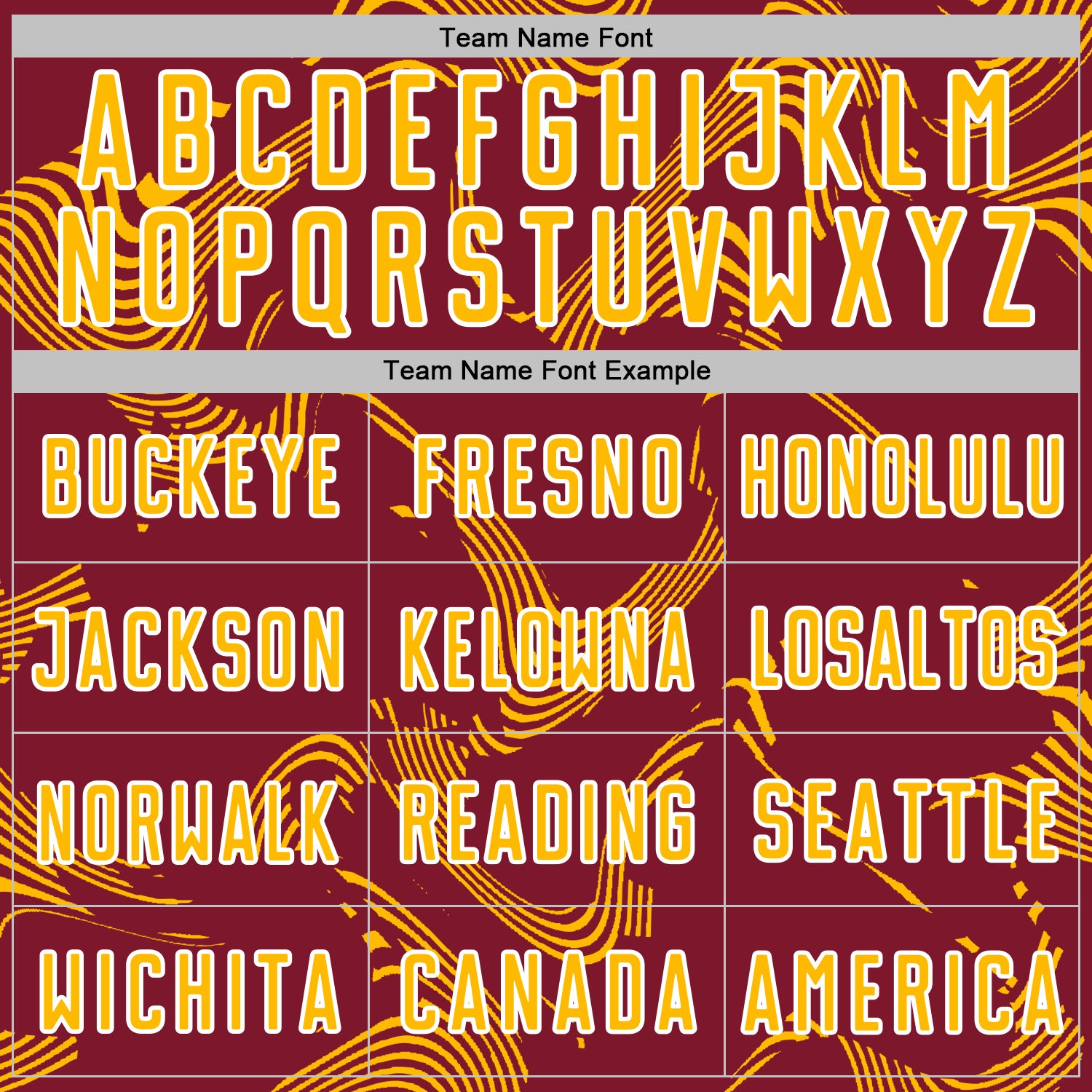 Custom Crimson Gold-White Curve Lines Sports Sublimation Soccer Uniform Jersey