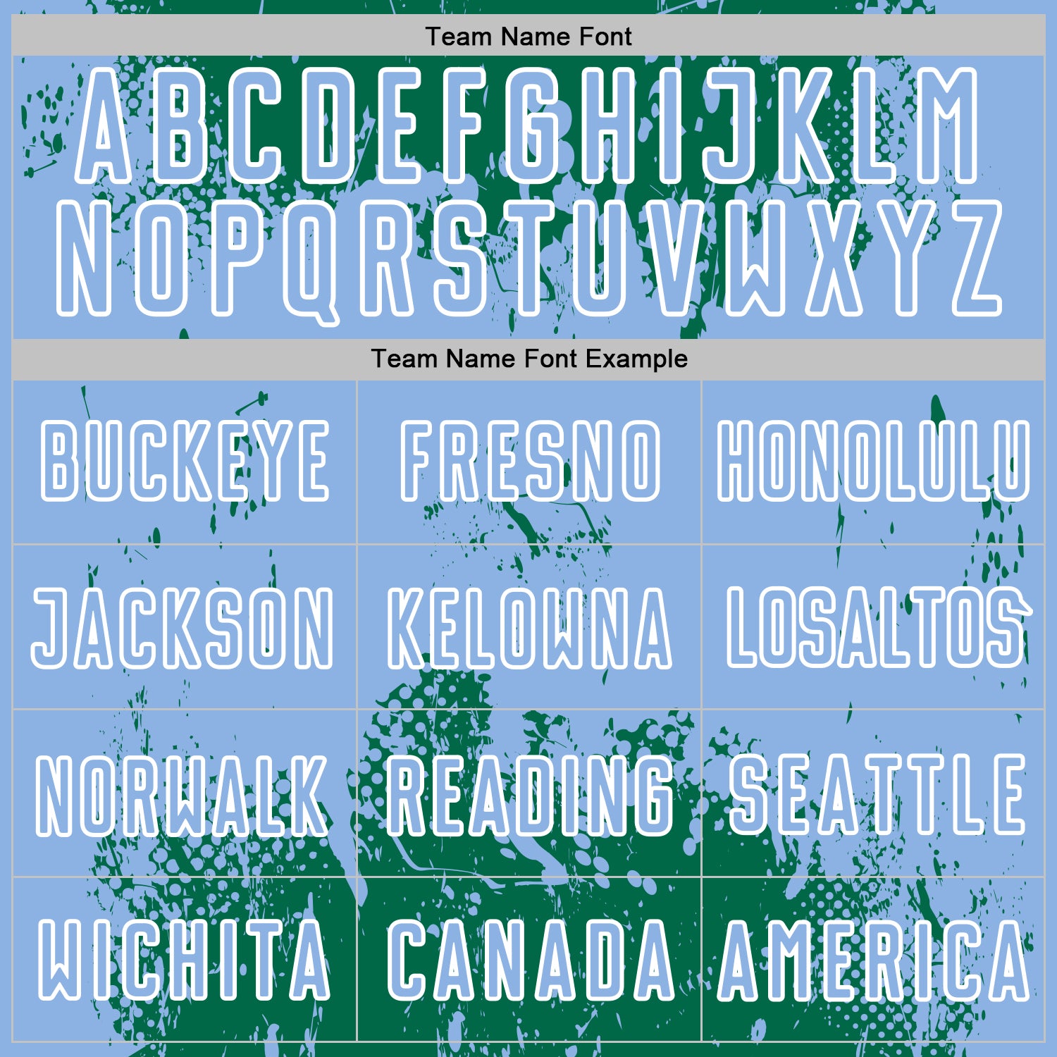 Custom Kelly Green Light Blue-White Abstract Splatter Grunge Art Sports Sublimation Soccer Uniform Jersey