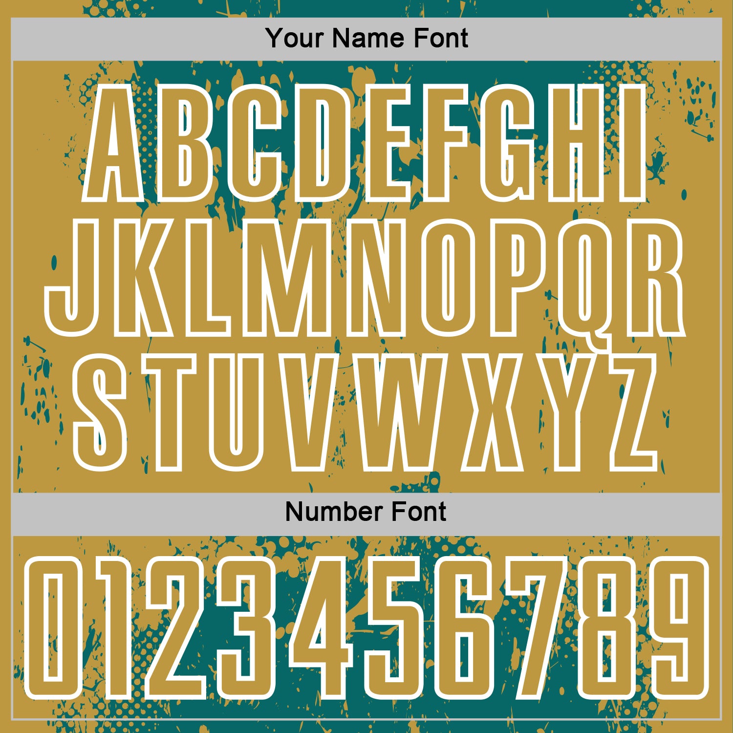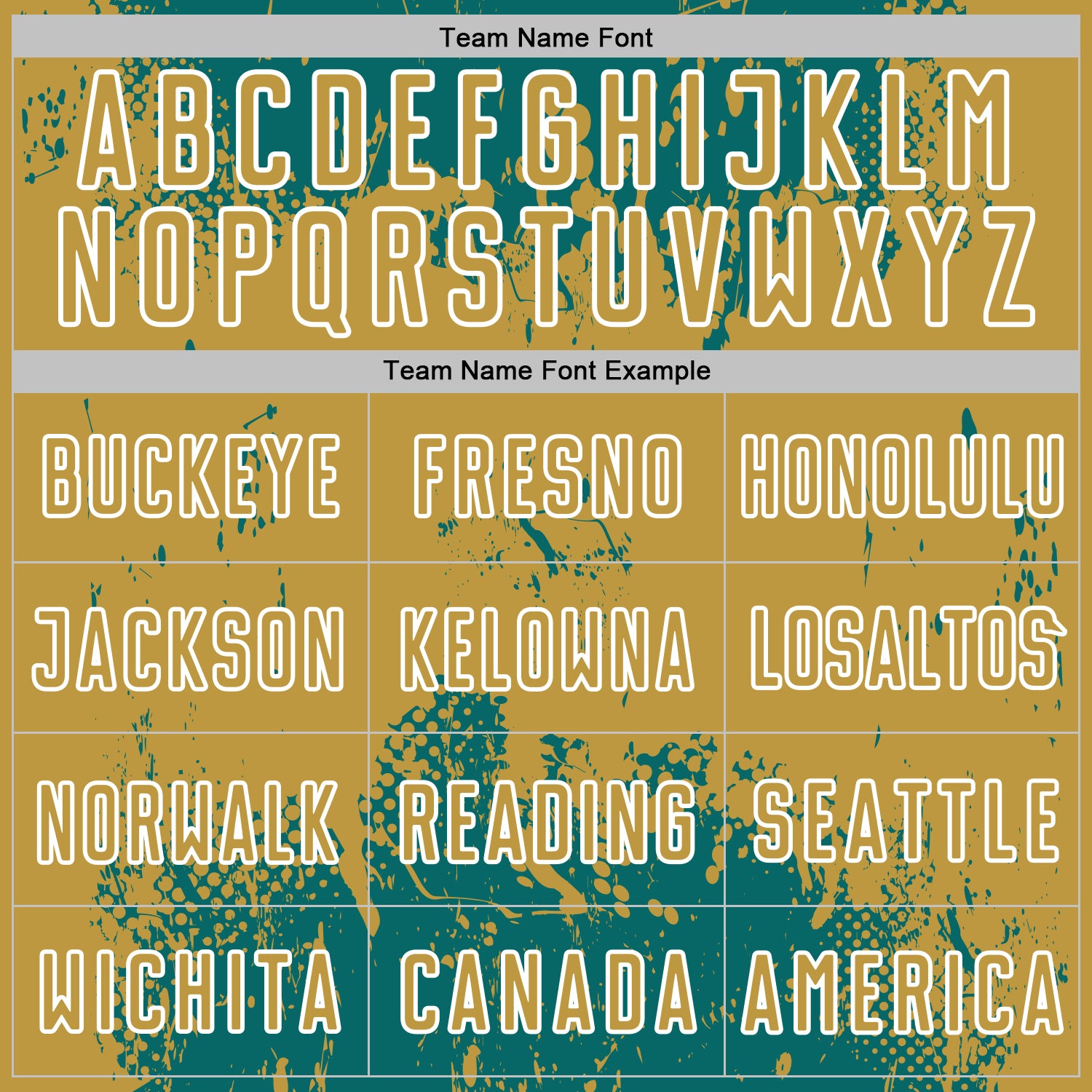 Custom Teal Old Gold-White Abstract Splatter Grunge Art Sports Sublimation Soccer Uniform Jersey