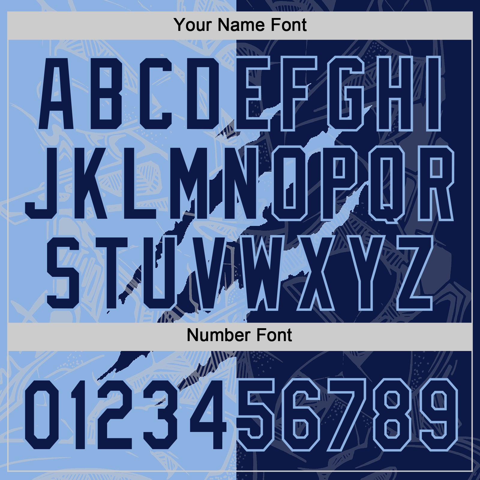 Custom Graffiti Pattern Navy-Light Blue 3D Scratch Two-Button Unisex Softball Jersey