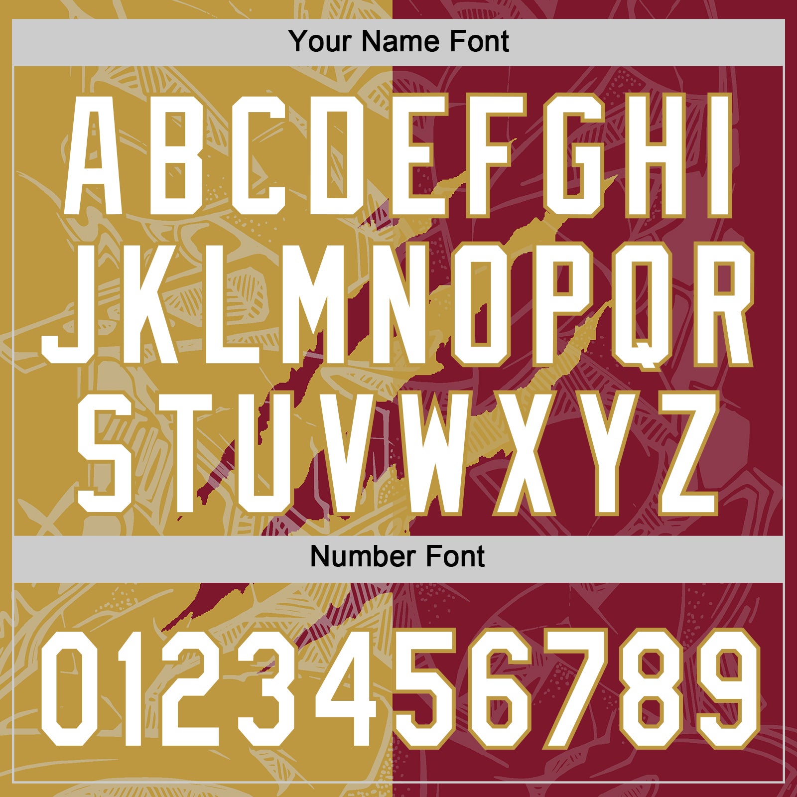 Custom Graffiti Pattern White Crimson-Old Gold 3D Scratch Two-Button Unisex Softball Jersey