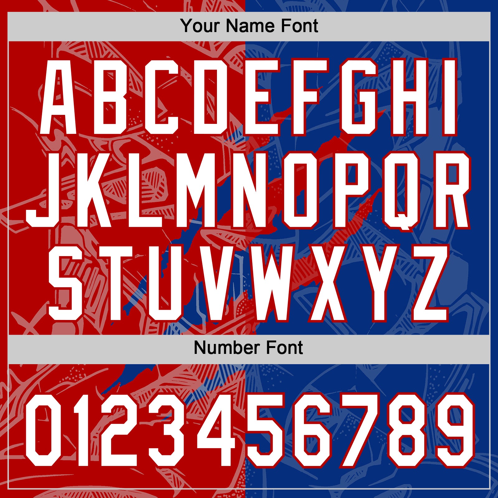 Custom Graffiti Pattern White Royal-Red 3D Scratch Two-Button Unisex Softball Jersey
