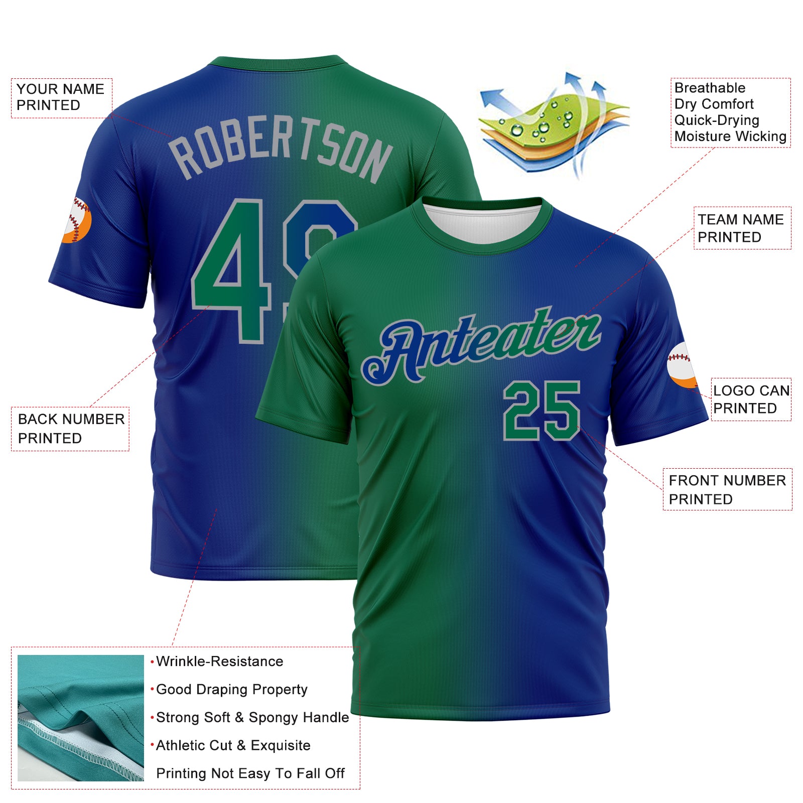 Custom Royal Kelly Green-Gray Gradient Fashion Performance T-Shirt