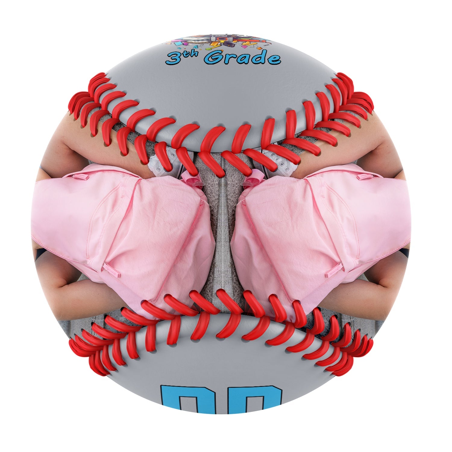 Personalized Grey Ready Set Learn Starting School 3th Grade Photo Baseballs