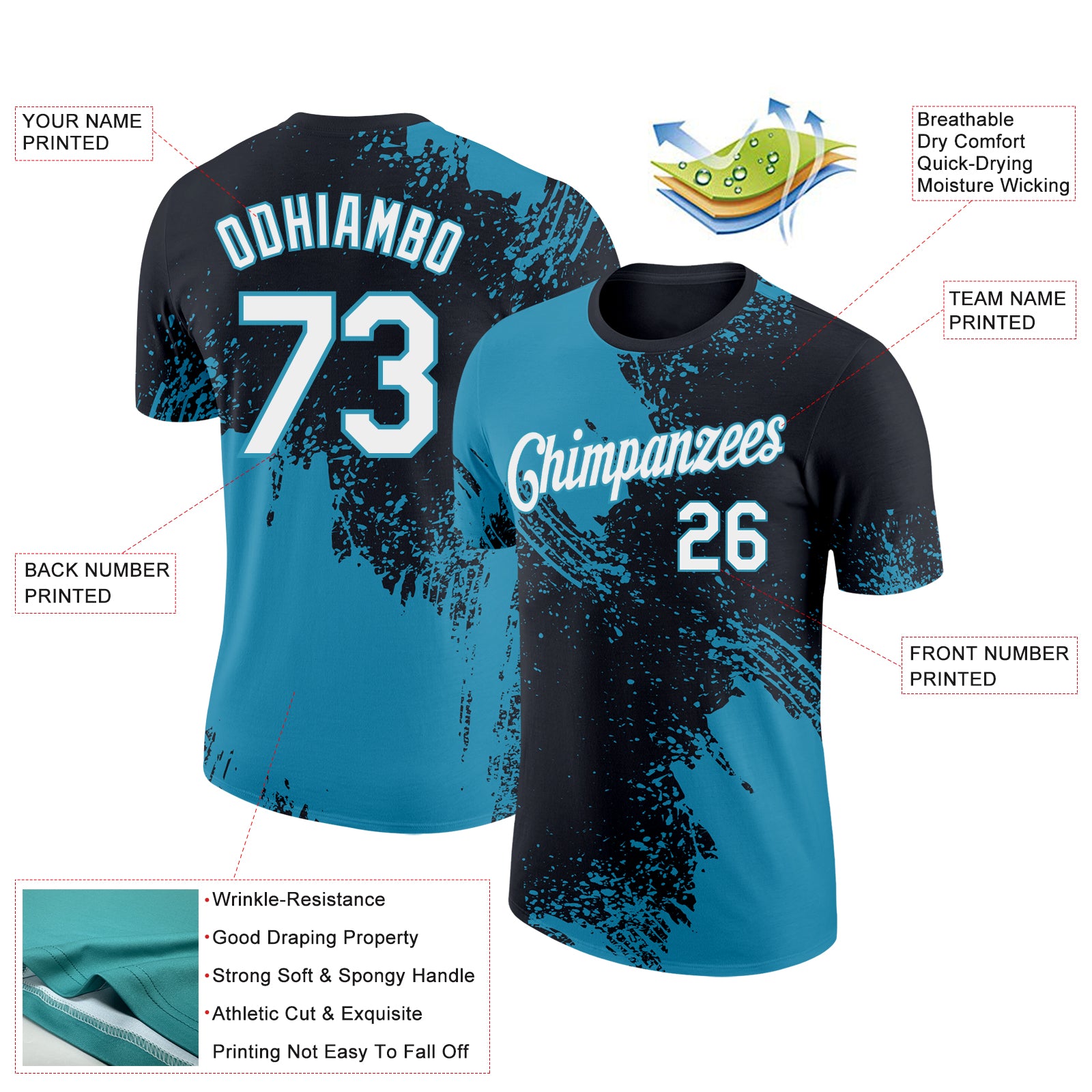 Custom Black White-Panther Blue 3D Pattern Design Abstract Brush Stroke Performance T-Shirt