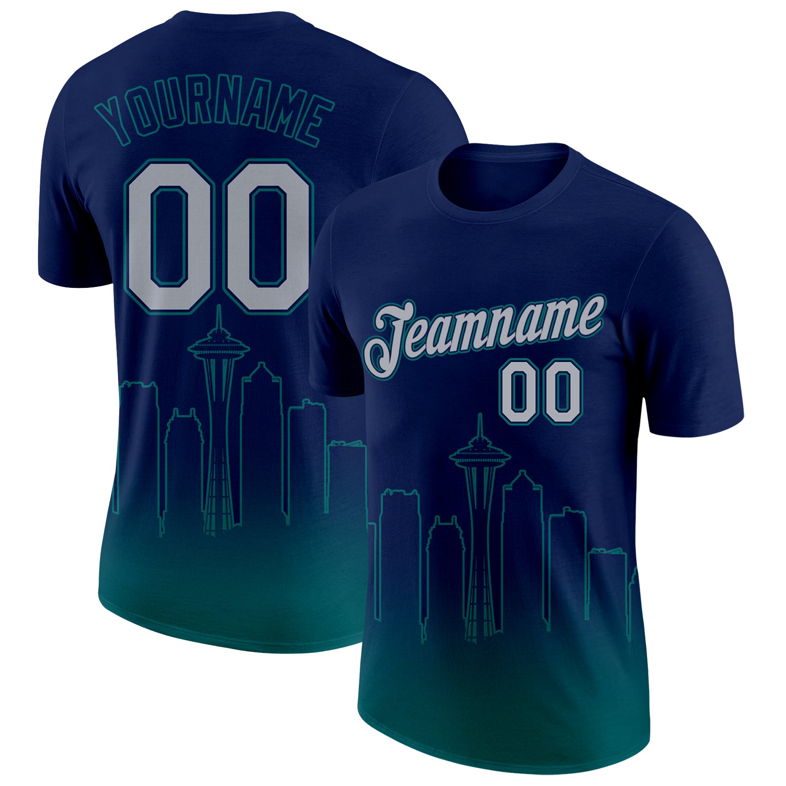 Custom Navy Gray-Teal 3D Seattle City Edition Fade Fashion Performance T-Shirt