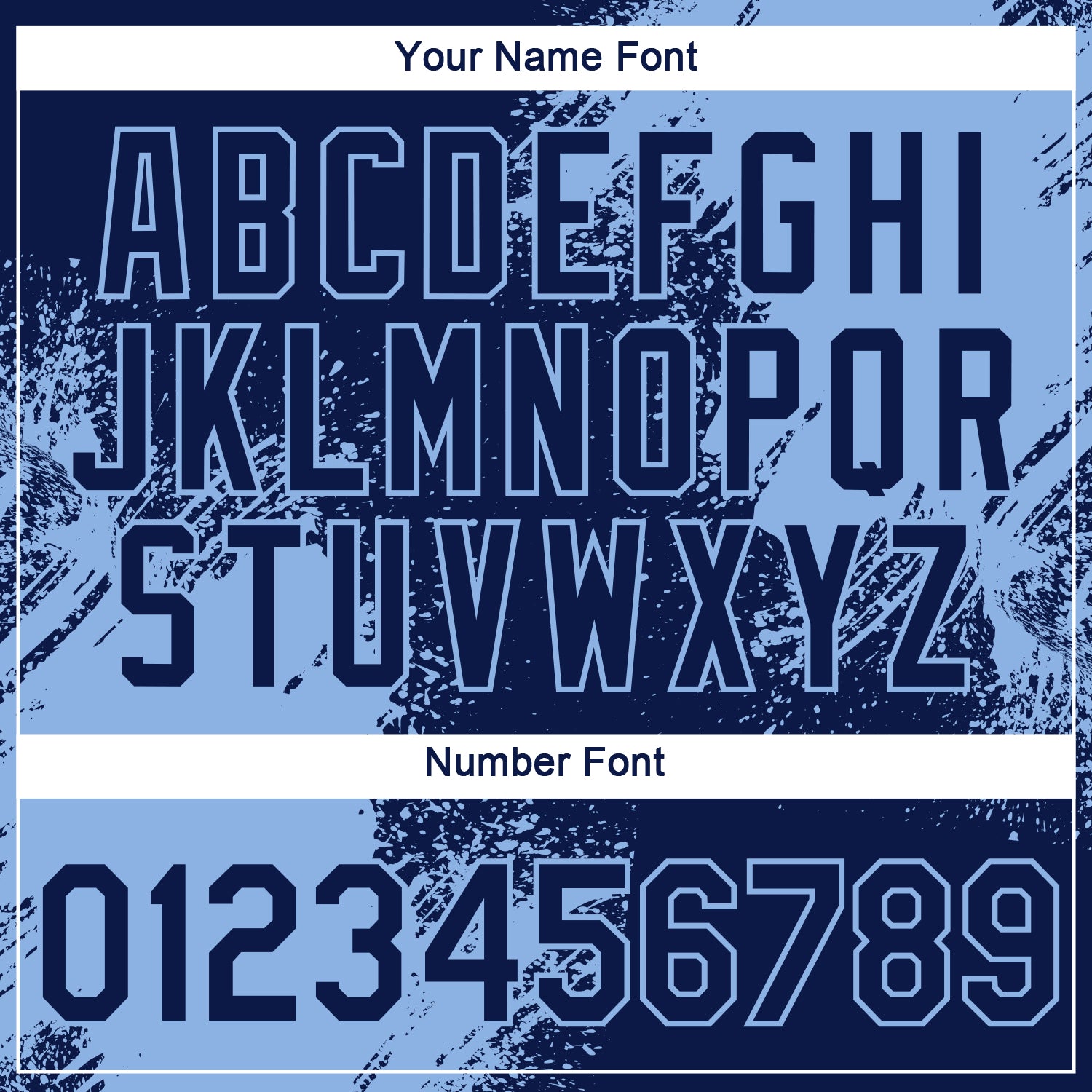 Custom Navy Light Blue 3D Pattern Design Abstract Brush Stroke Performance T-Shirt