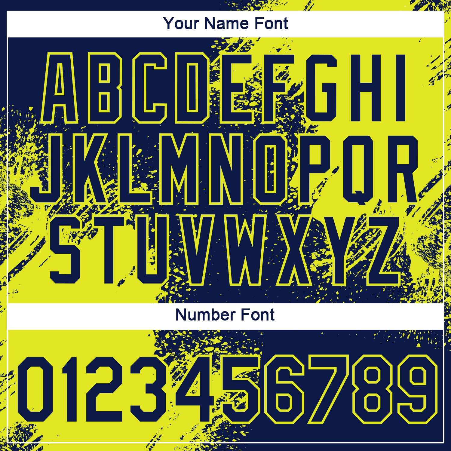 Custom Navy Neon Yellow 3D Pattern Design Abstract Brush Stroke Performance T-Shirt