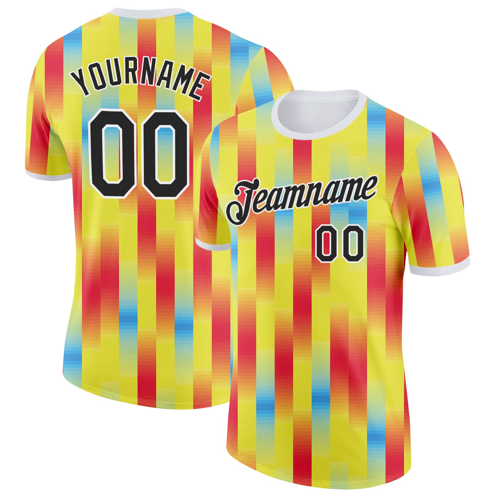 Custom Yellow Black Red Blue-White Ecuador Stripe Performance T-Shirt