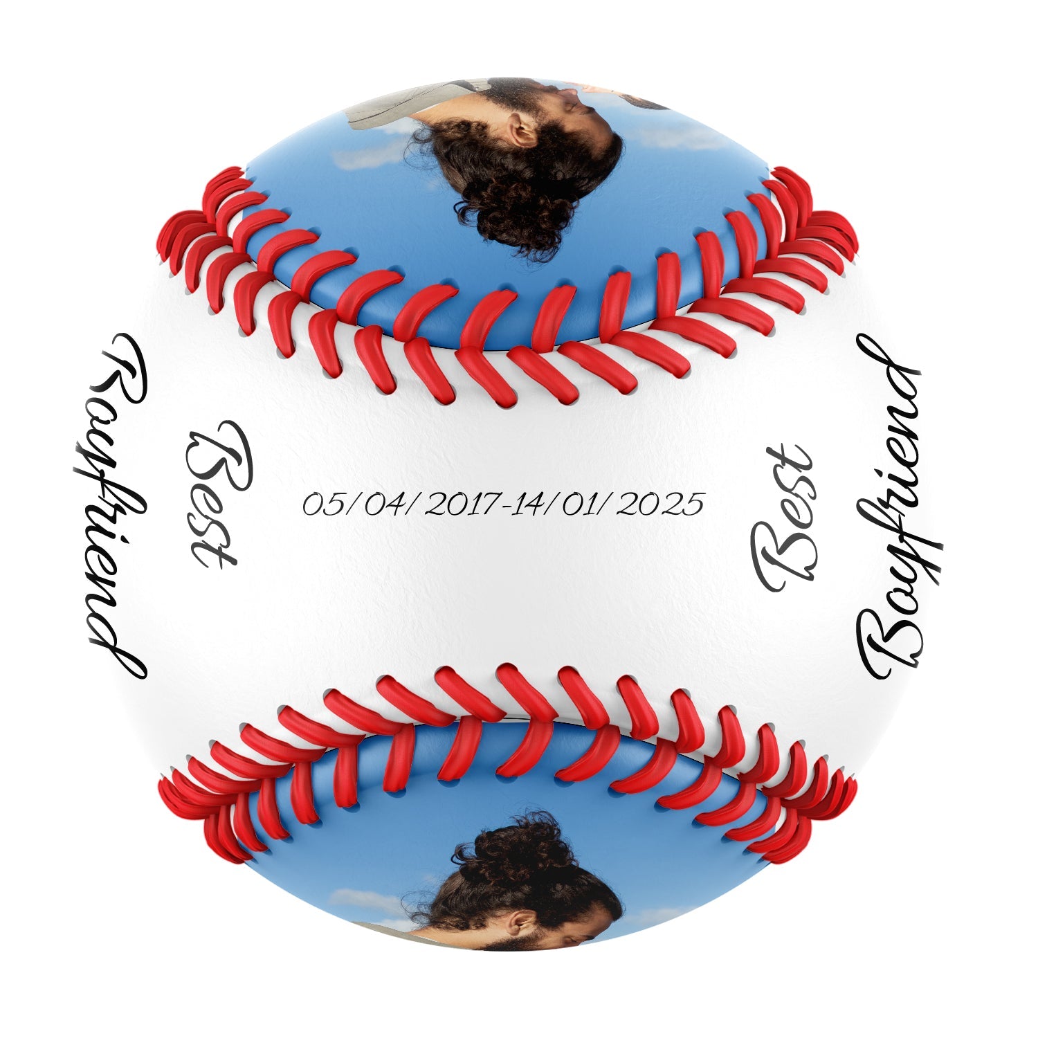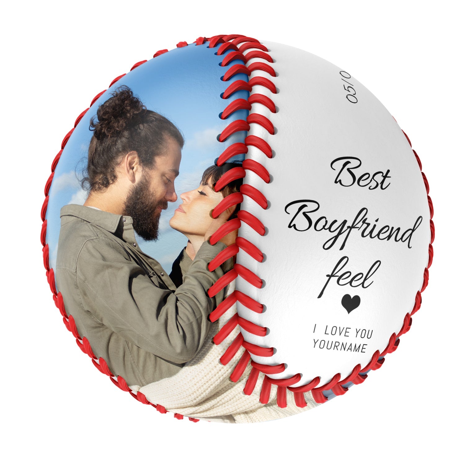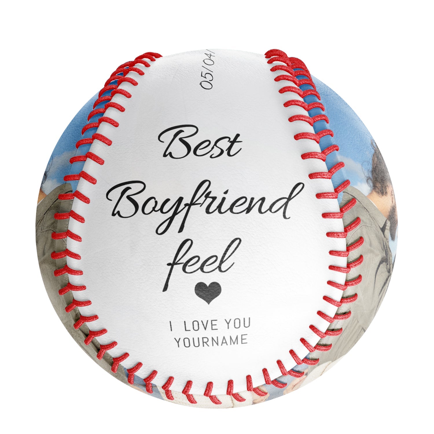 Best Boyfriend Feel Personalized Anniversary Name Date Photo White Baseballs