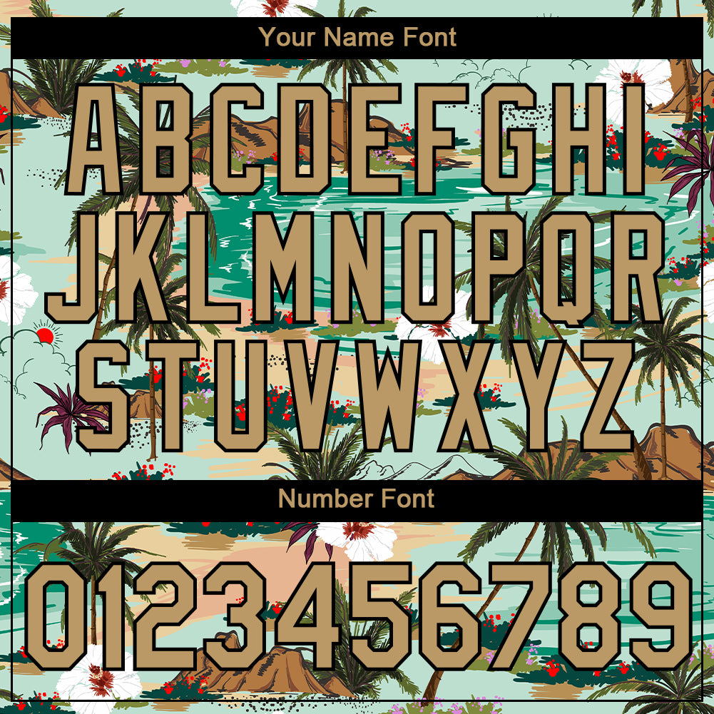 Custom Aqua Old Gold-Black 3D Pattern Design Hawaii Palm Trees And Flowers Performance T-Shirt