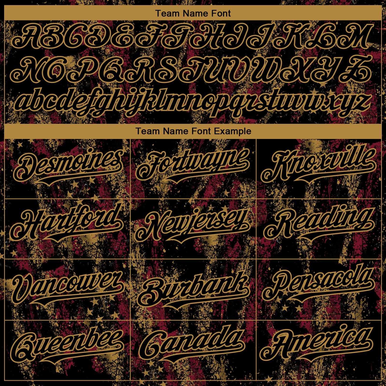 Custom Black Old Gold 3D American Flag Skull Patriotic Authentic Baseball Jersey