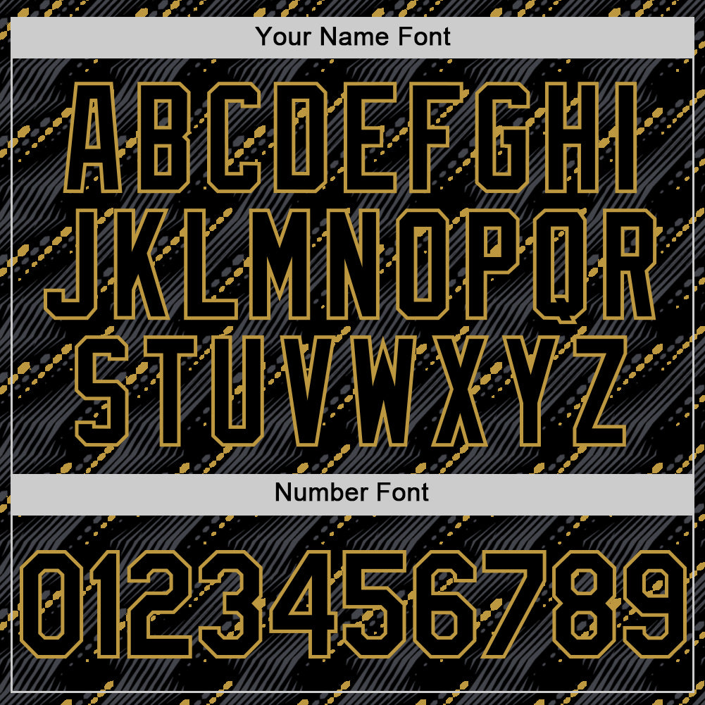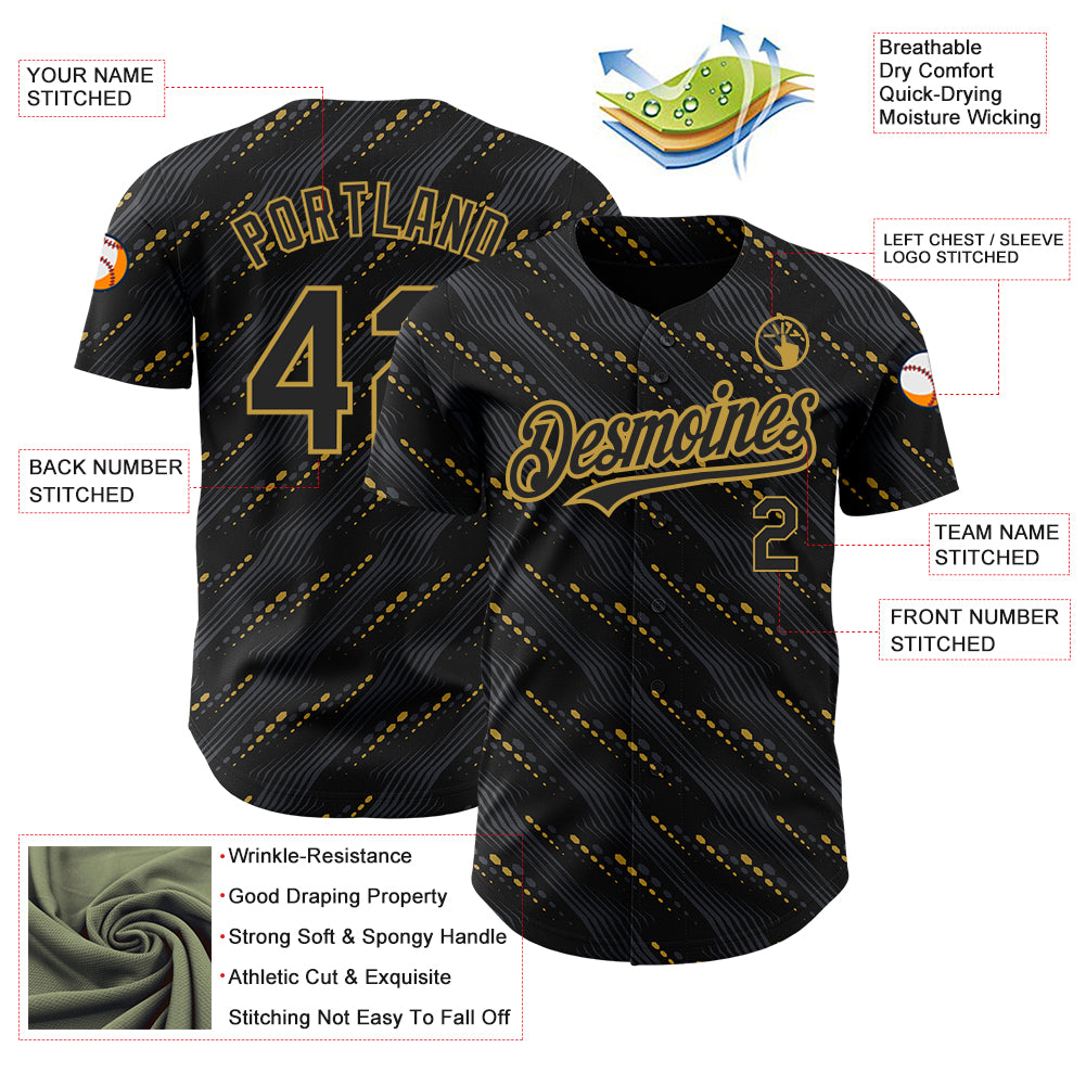 Custom Black Old Gold 3D Pattern Design Slant Lines Authentic Baseball Jersey