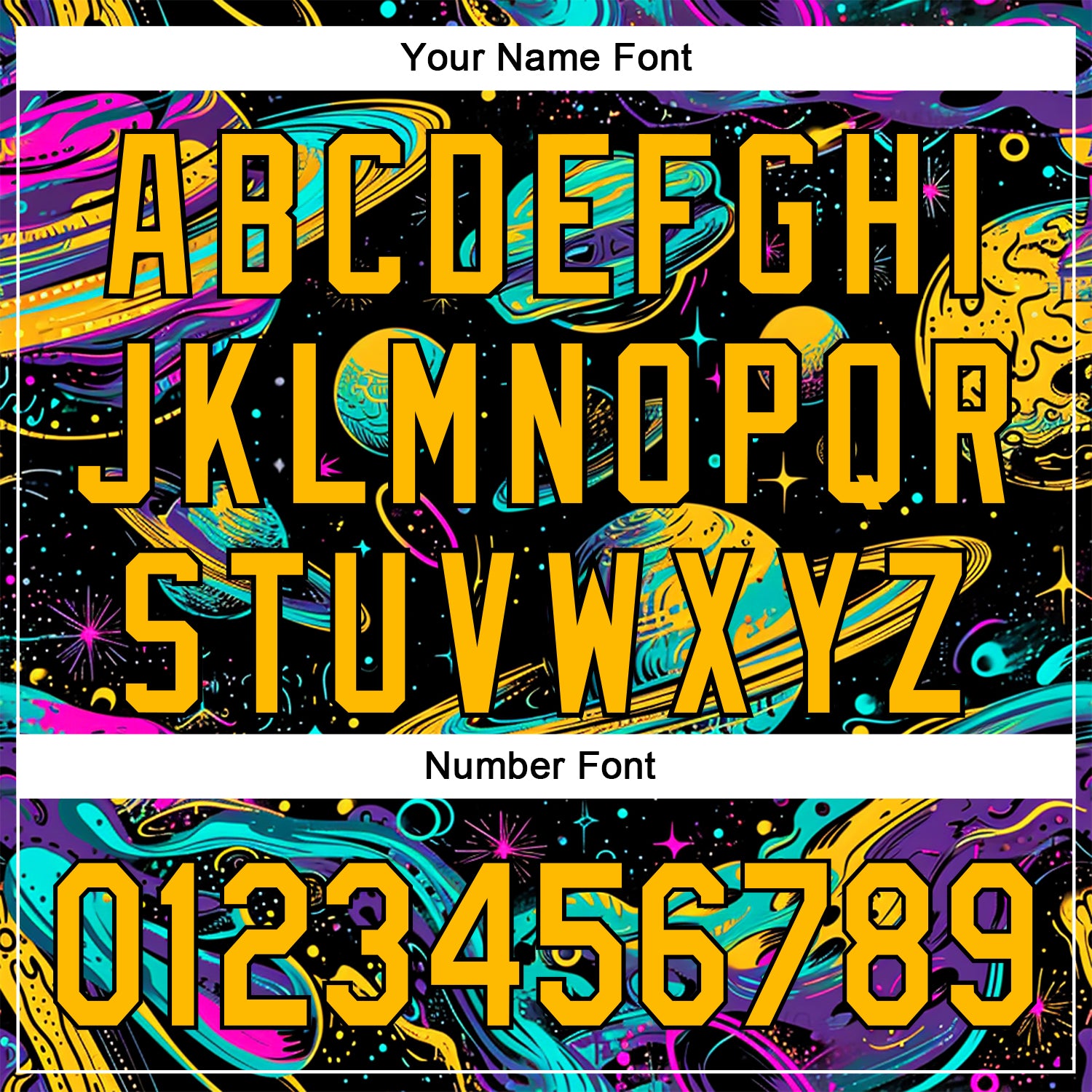 Custom Black Gold 3D Pattern Design Space With Planets And Stars Authentic Baseball Jersey