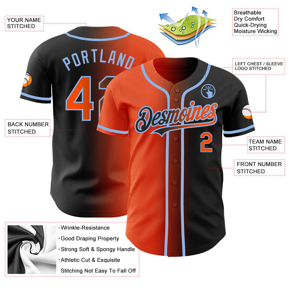 Custom Black Orange-Light Blue Authentic Gradient Fashion Baseball Jersey