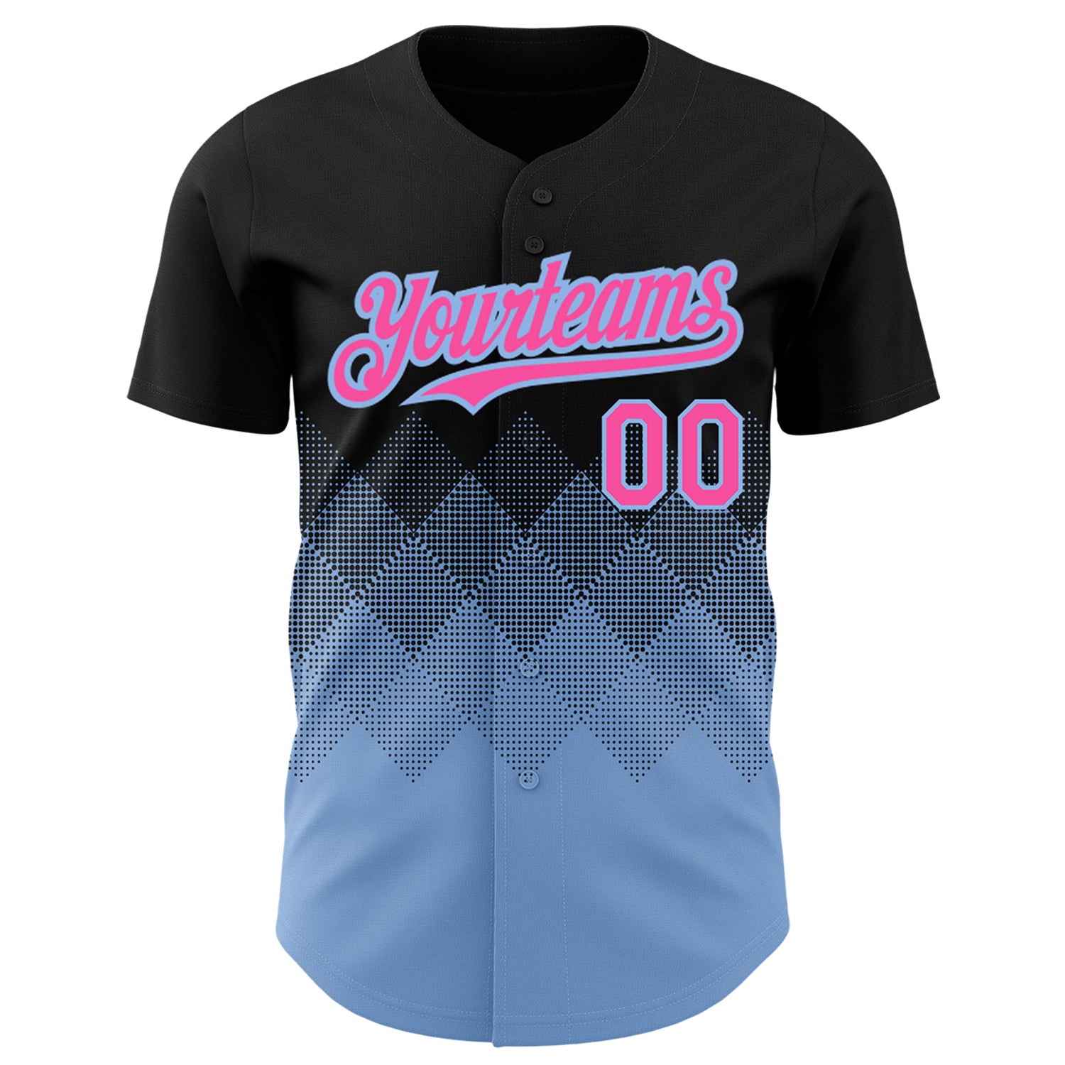 Custom Black Pink-Light Blue 3D Pattern Design Gradient Square Shapes Authentic Baseball Jersey
