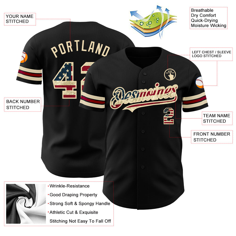 Custom Black Vintage USA Flag City Cream-Crimson Authentic Baseball Jersey