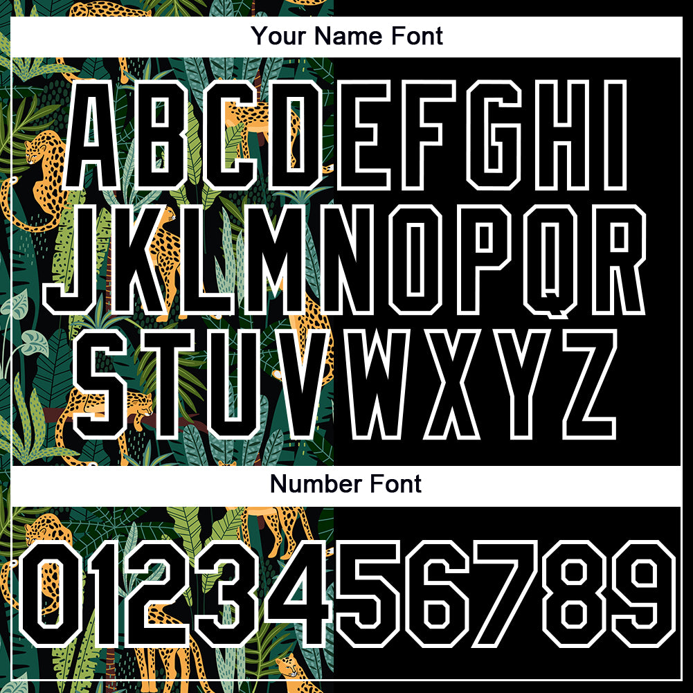 Custom Black White 3D Pattern Leopards And Tropical Palm Leaves Two-Button Unisex Softball Jersey