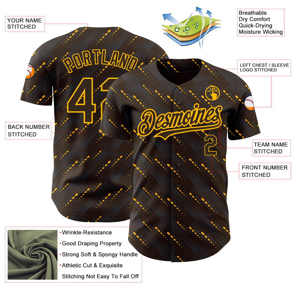 Custom Brown Gold 3D Pattern Design Slant Lines Authentic Baseball Jersey