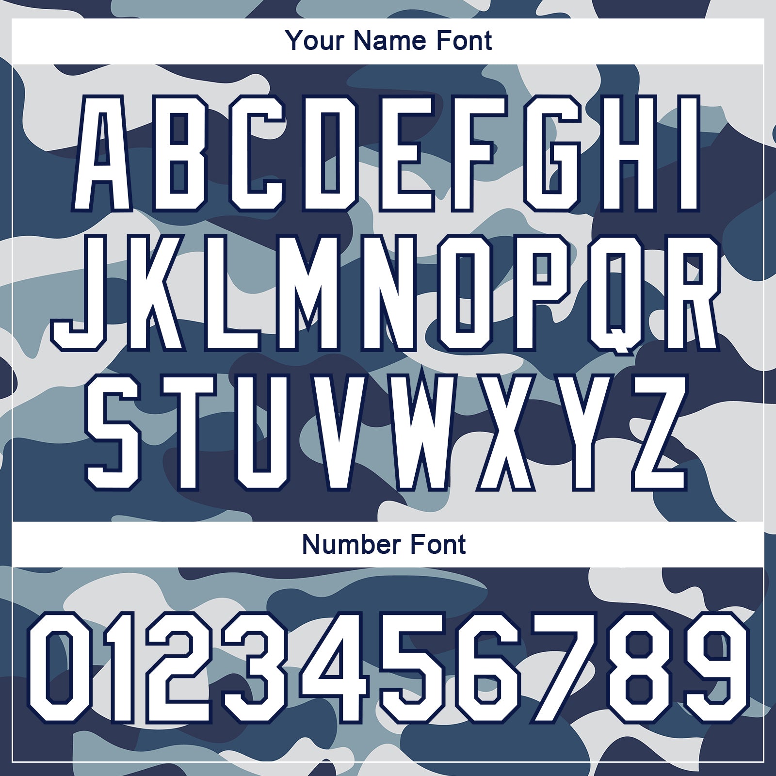 Custom Camo White-Navy 3D Bomber Full-Snap Varsity Letterman Salute To Service Jacket