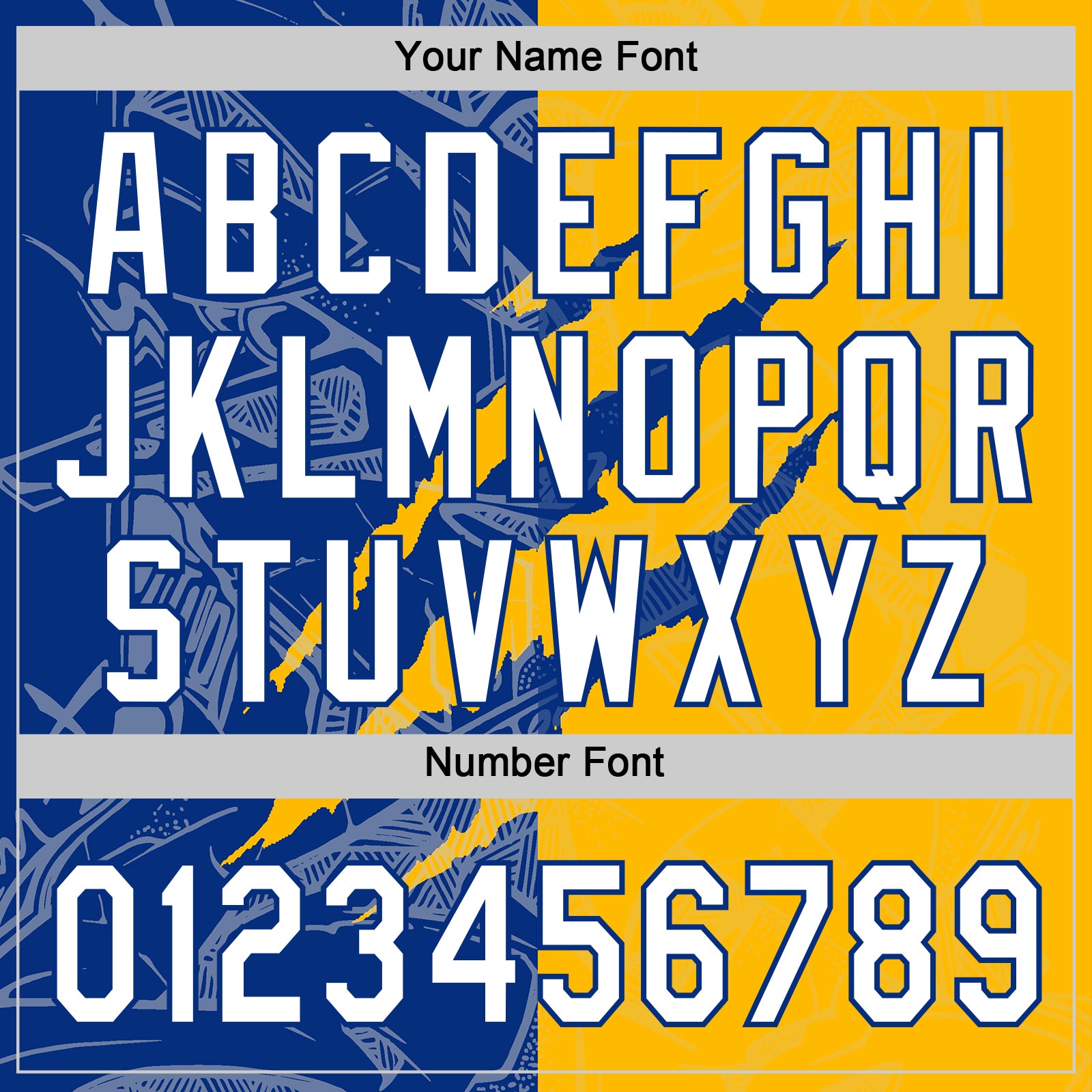 Custom Graffiti Pattern White Gold-Royal 3D Scratch Two-Button Unisex Softball Jersey