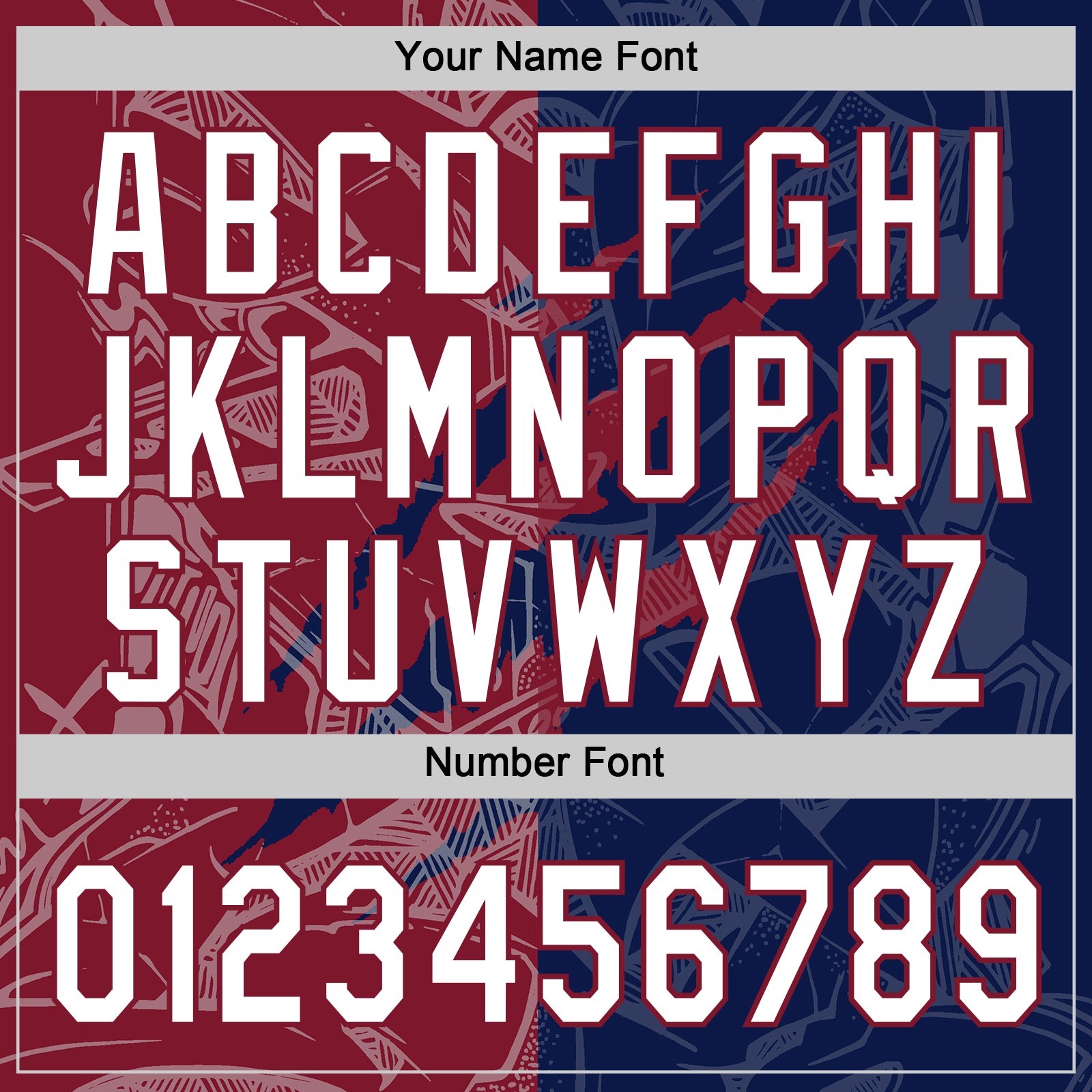 Custom Graffiti Pattern White Navy-Crimson 3D Scratch Two-Button Unisex Softball Jersey