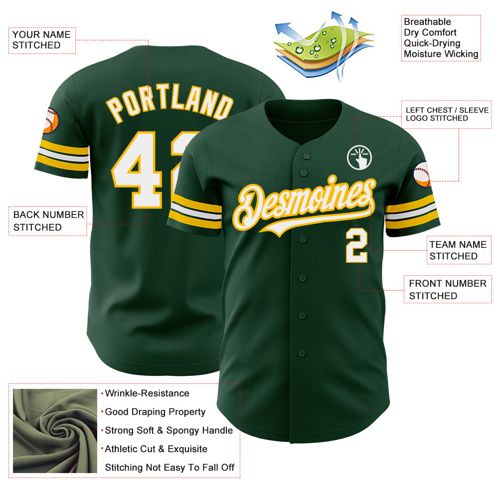 Custom Green White-Gold Authentic Baseball Jersey
